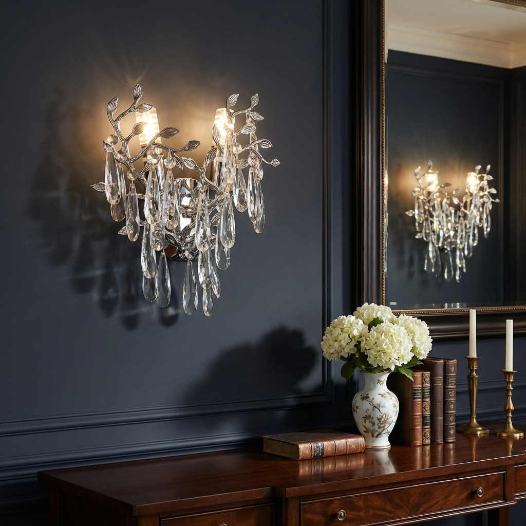 Echipata cu doua socluri E14, aplica permite alegerea becurilor potrivite stilului dorit de iluminare, fiecare cu o putere maxima de 40W. Constructia din metal si cristal asigura rezistenta si durabilitate, in timp ce aspectul sofisticat o face potrivita pentru living, dormitor, hol sau spatii elegante de tip hotelier.