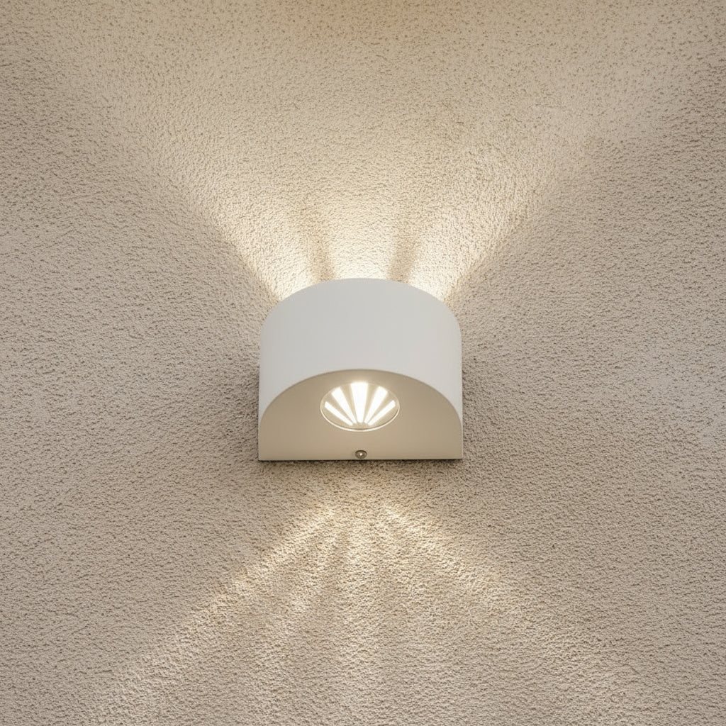 Cu un grad de protectie IP44, este potrivita pentru zonele exterioare protejate, precum terasa sau balconul. Avand o inaltime de 9 cm, o latime de 15 cm si o adancime de 10,5 cm, aplica din plastic alb mat se integreaza perfect in orice decor exterior, adaugand eleganta si stil.