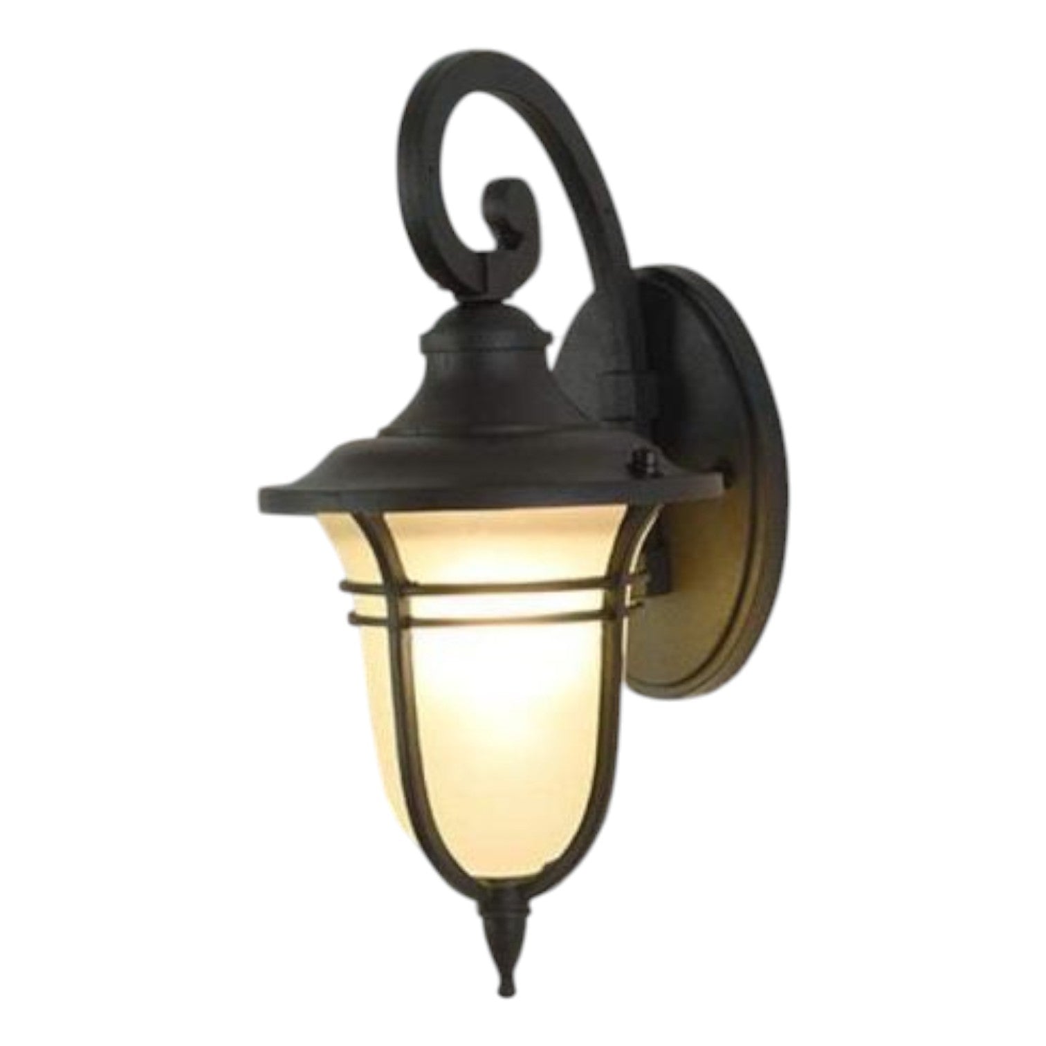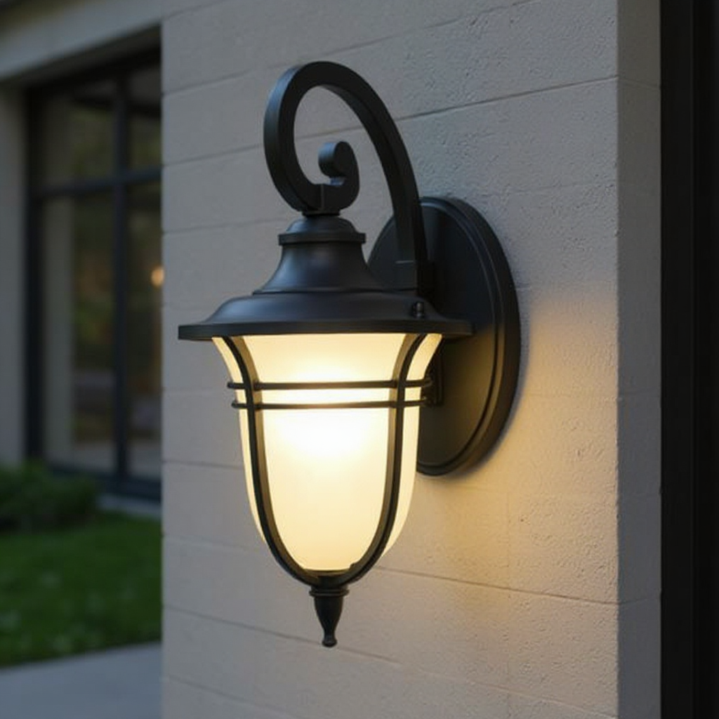 Aplica VYLA Black imbina un design clasic de felinar cu o forma eleganta, accentuata de bratul curbat si sticla mata. Emite o lumina difuzata, potrivita pentru spatiile exterioare unde se doreste atat vizibilitate, cat si un aspect decorativ placut. Compatibilitatea cu becuri E27 permite personalizarea atmosferei in functie de preferinte.
