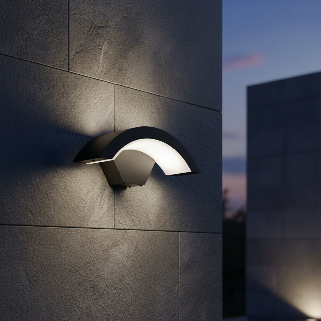 Aplica LED Helios impresioneaza prin forma sa curbata si moderna, oferind o lumina neutra placuta si uniform distribuita. Este potrivita pentru fatade, intrari si alte zone exterioare unde ai nevoie de un corp de iluminat elegant si durabil. Materialele rezistente si finisajul negru mat asigura integrarea usoara in orice stil arhitectural.