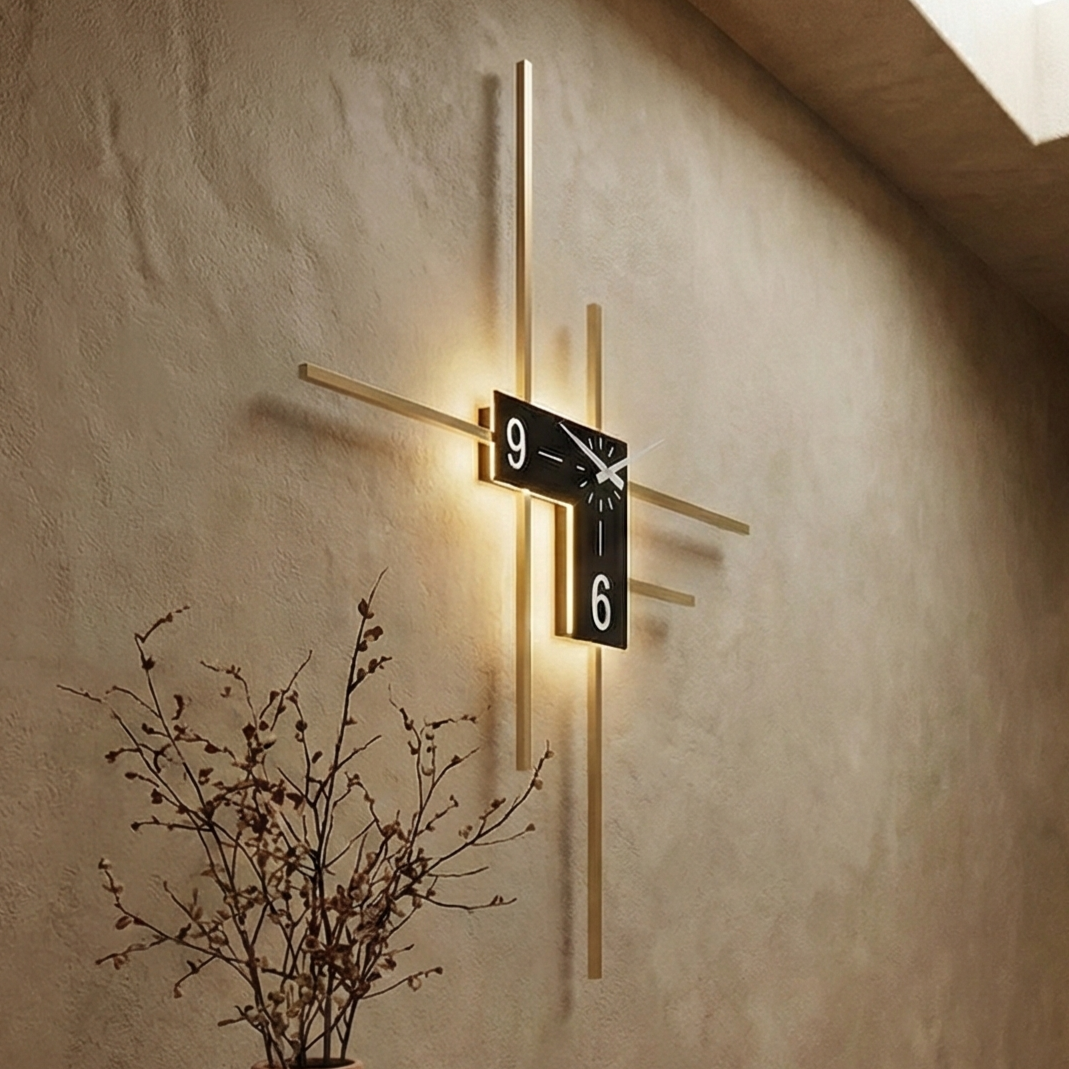 Aplica LED cu Ceas Chrono este mai mult decat un simplu ceas – este o piesa de arta moderna care transforma orice perete intr-un punct de atractie. Designul geometric, cu linii aurii si un contrast elegant negru, adauga un aer sofisticat spatiului tau. Mecanismul silentios elimina zgomotul de ticaire, oferind un mediu linistit, perfect pentru relaxare sau concentrare. Fabricat din aluminiu premium, acest ceas este rezistent la umezeala si coroziune, garantand durabilitate si performanta. Dimensiunile sale generoase il fac ideal pentru decorarea peretilor mari, iar montajul simplu il face accesibil oricui.