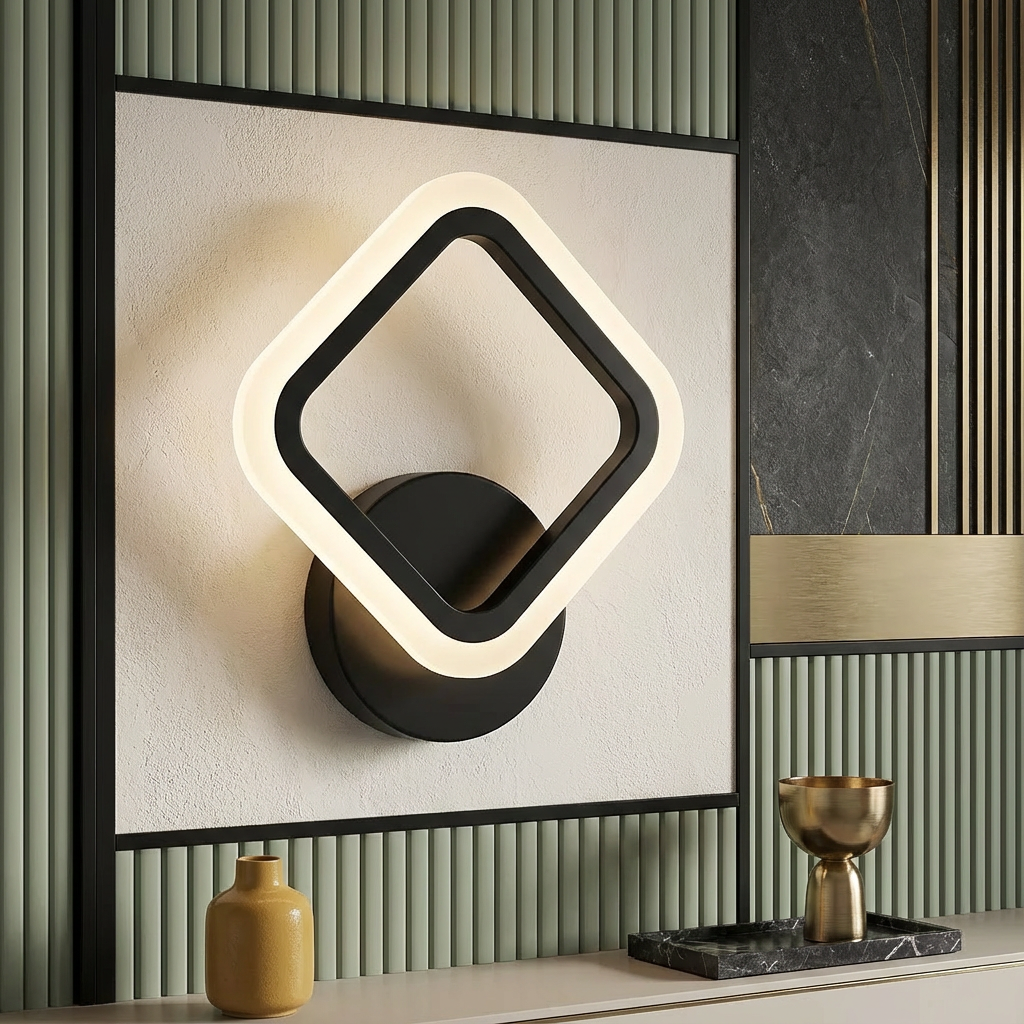 Aplica LED Diamond Simple Black aduce un accent modern prin forma sa geometrica si finisajul negru mat. Lumina difuzata uniform poate fi ajustata in trei nuante, astfel incat spatiul sa capete atmosfera potrivita in orice moment. Este o solutie potrivita pentru holuri, dormitoare sau zone unde se doreste o iluminare discreta si decorativa.