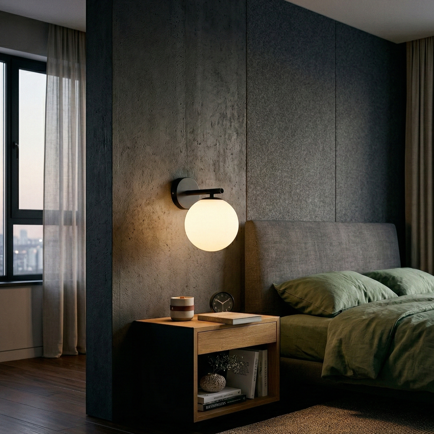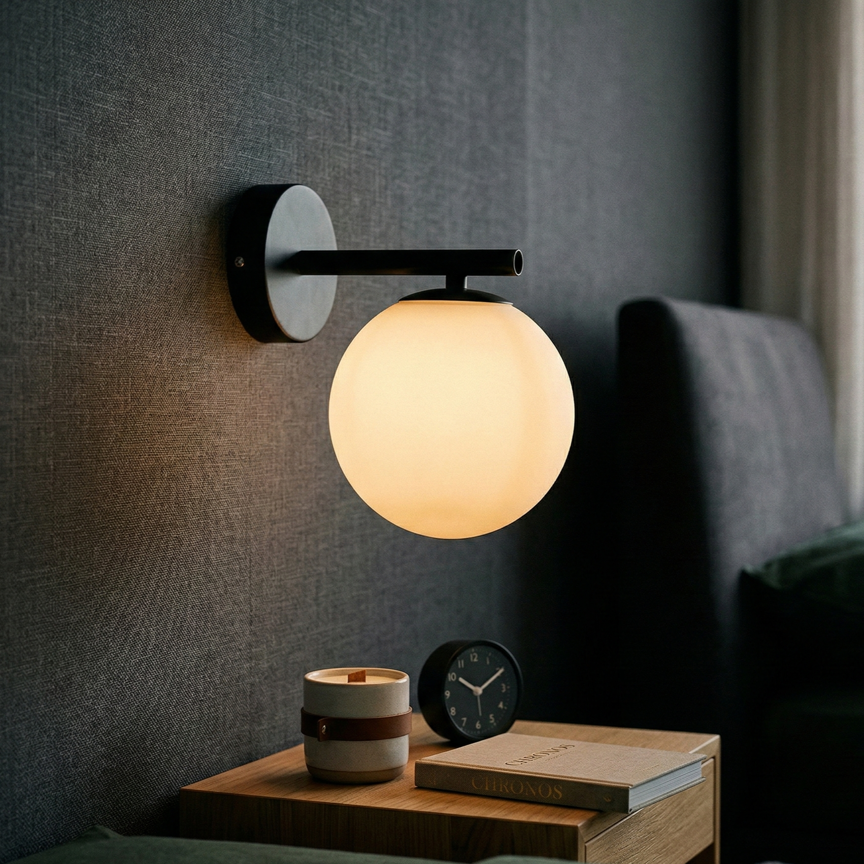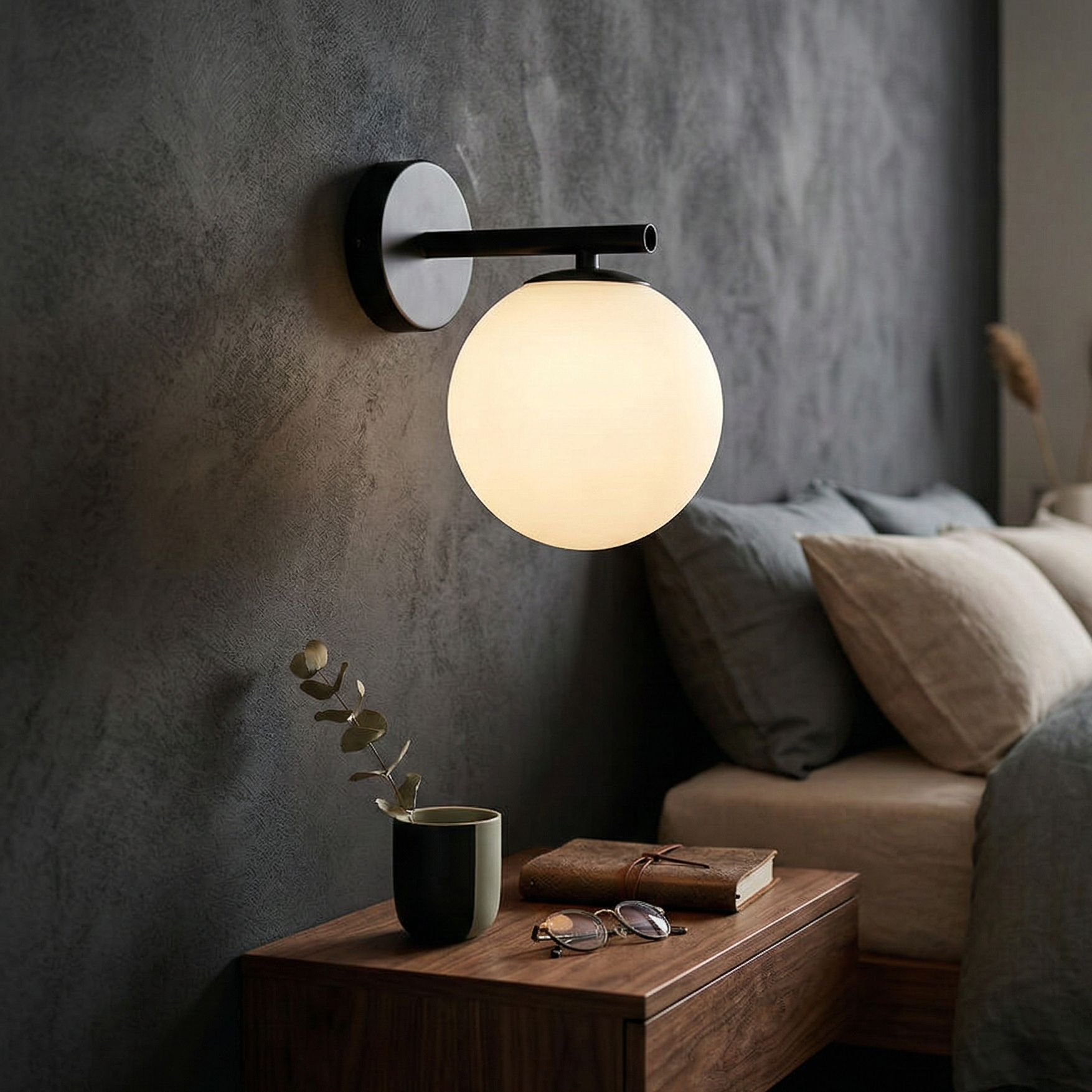 Aplica Abajur Mat Black CALYPSA 1xG9 este un corp de iluminat modern cu influente minimaliste si accente subtile contemporane. Designul sau echilibrat, definit de globul mat si structura neagra eleganta, o face ideala pentru dormitor, hol sau zona de living.