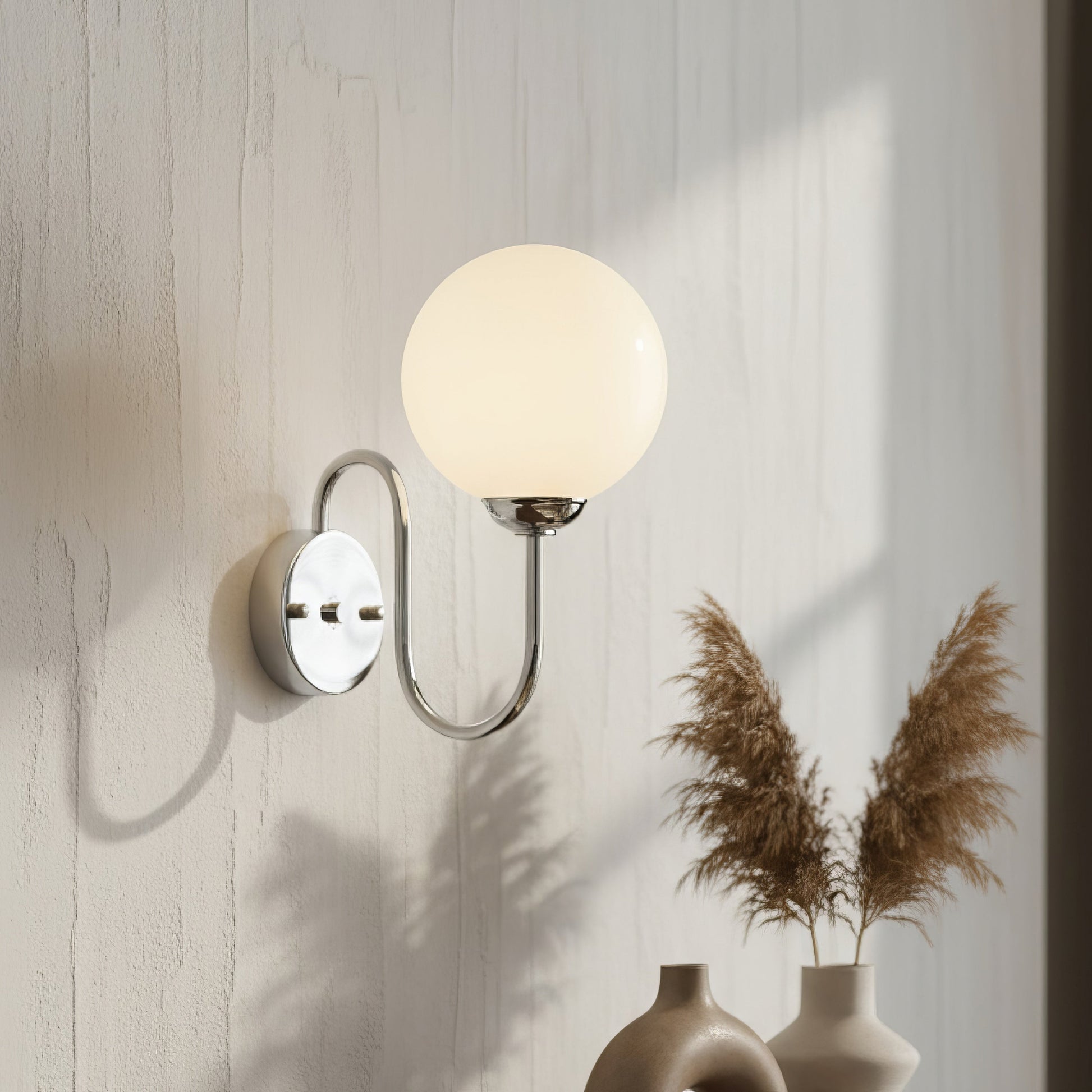 Aplica LOMA cu un singur brat aduce un plus de eleganta oricarui spatiu. Globul mat din ABS ofera o lumina difuza si calda, iar structura cromata adauga un accent modern. Este alegerea ideala pentru spatii ce au nevoie de o iluminare rafinata.