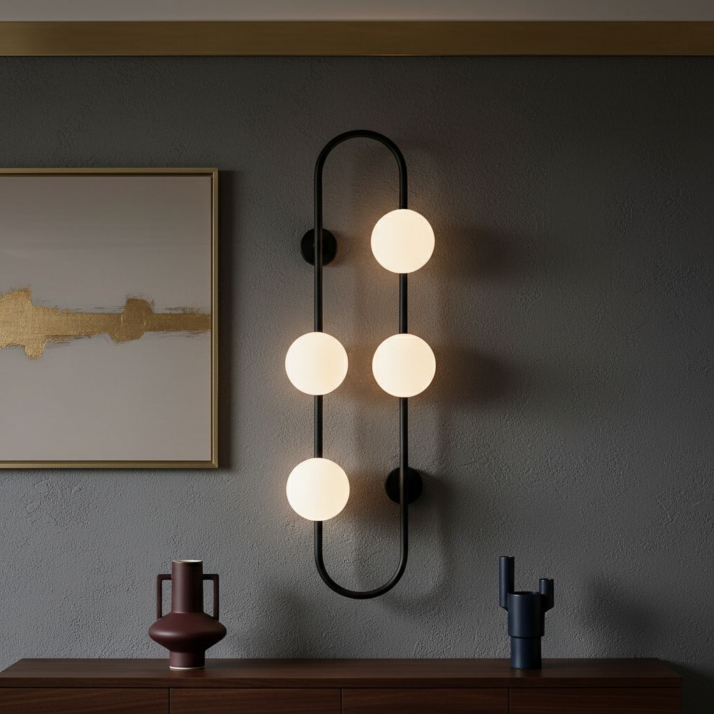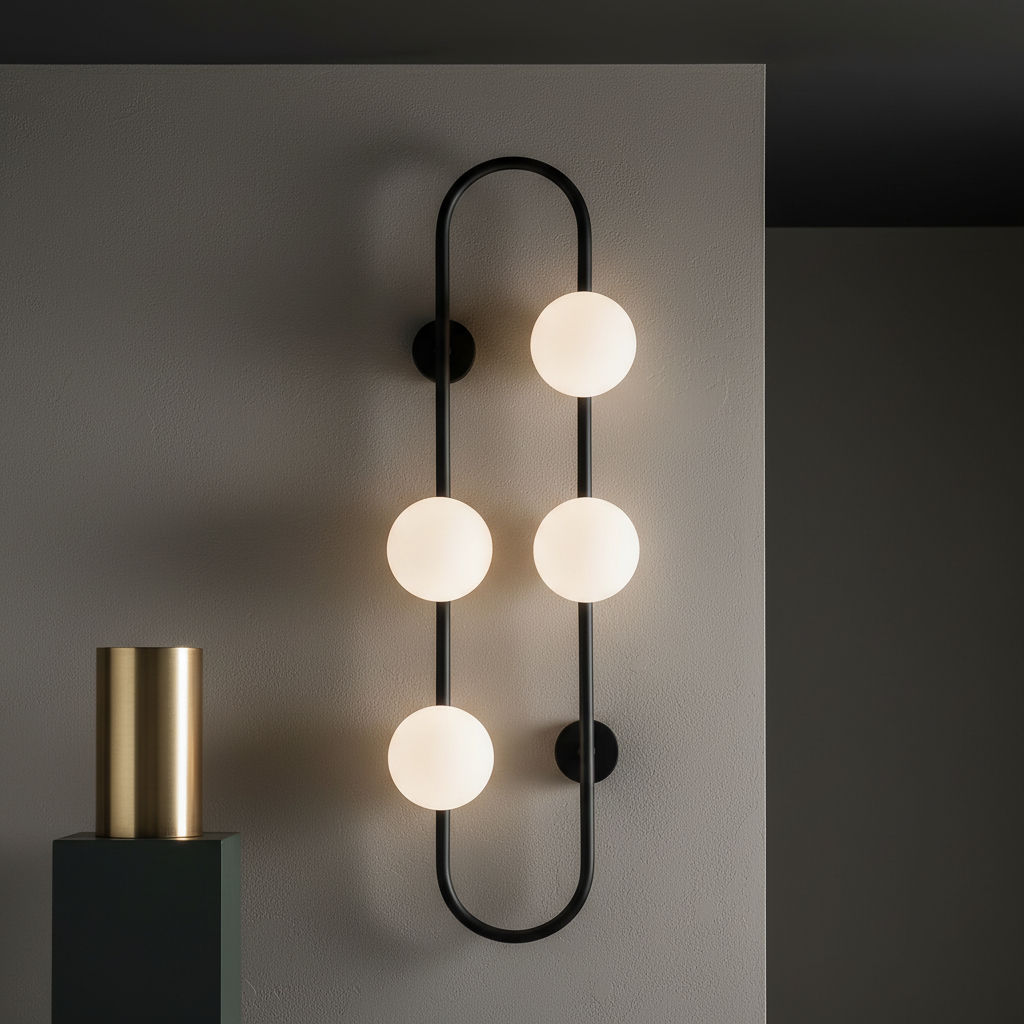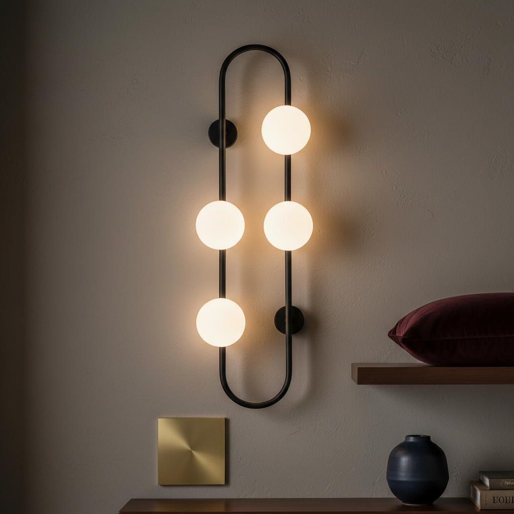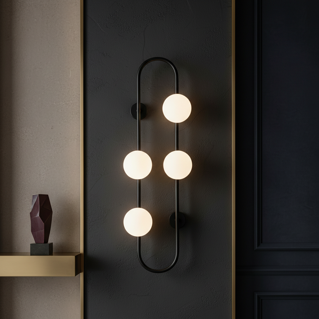 Aplica POLARIS impresioneaza prin designul sau modern si structura metalica neagra, care adauga contrast si personalitate peretelui. Dispunerea verticala si cele patru surse de iluminare creeaza un efect vizual echilibrat, potrivit pentru interioare contemporane.