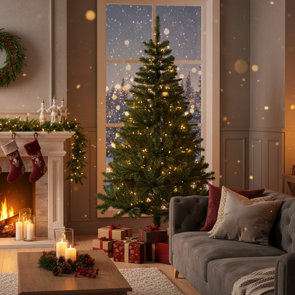 Acest brad artificial cu ramuri bogate este alcatuit dintr-un material ecologic si foarte rezistent. Se poate monta in cca. 5 minute si este foarte usor de depozitat!