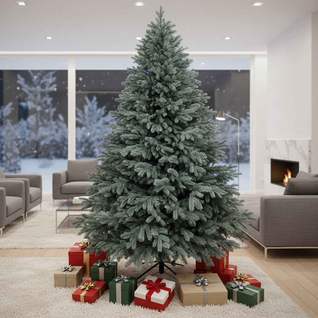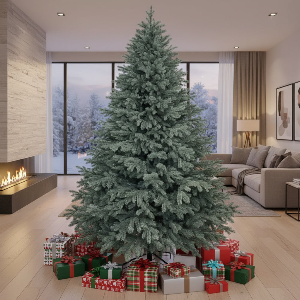 Este o variantă de lux, potrivită pentru spații ample, unde forma și nuanța lui aparte pot fi puse în valoare. Atmosfera din încăpere se schimbă instant, iar bradul devine piesa centrală a decorului de sărbători.