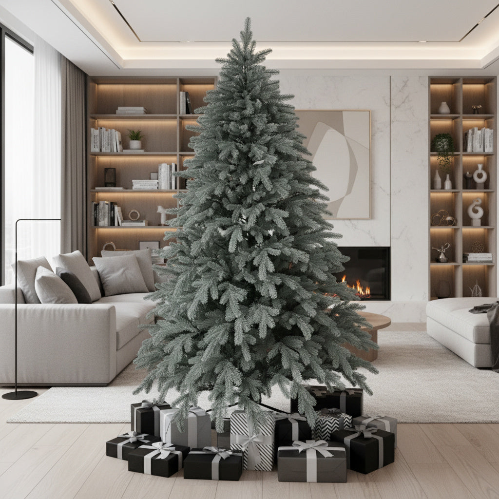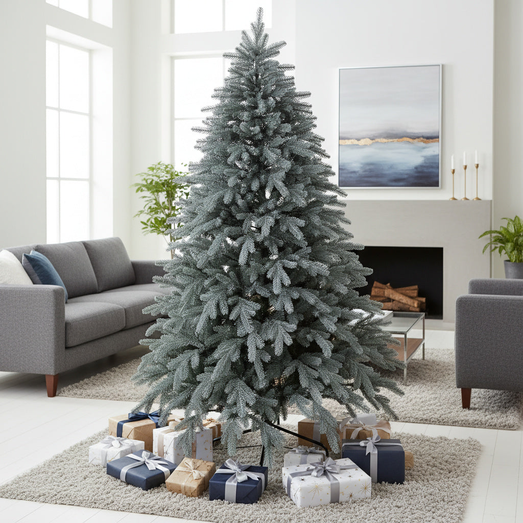 Acest brad combină detaliile de lux cu frumusețea unei bijuterii prețioase, aducând în casa ta rafinamentul și strălucirea safirului.