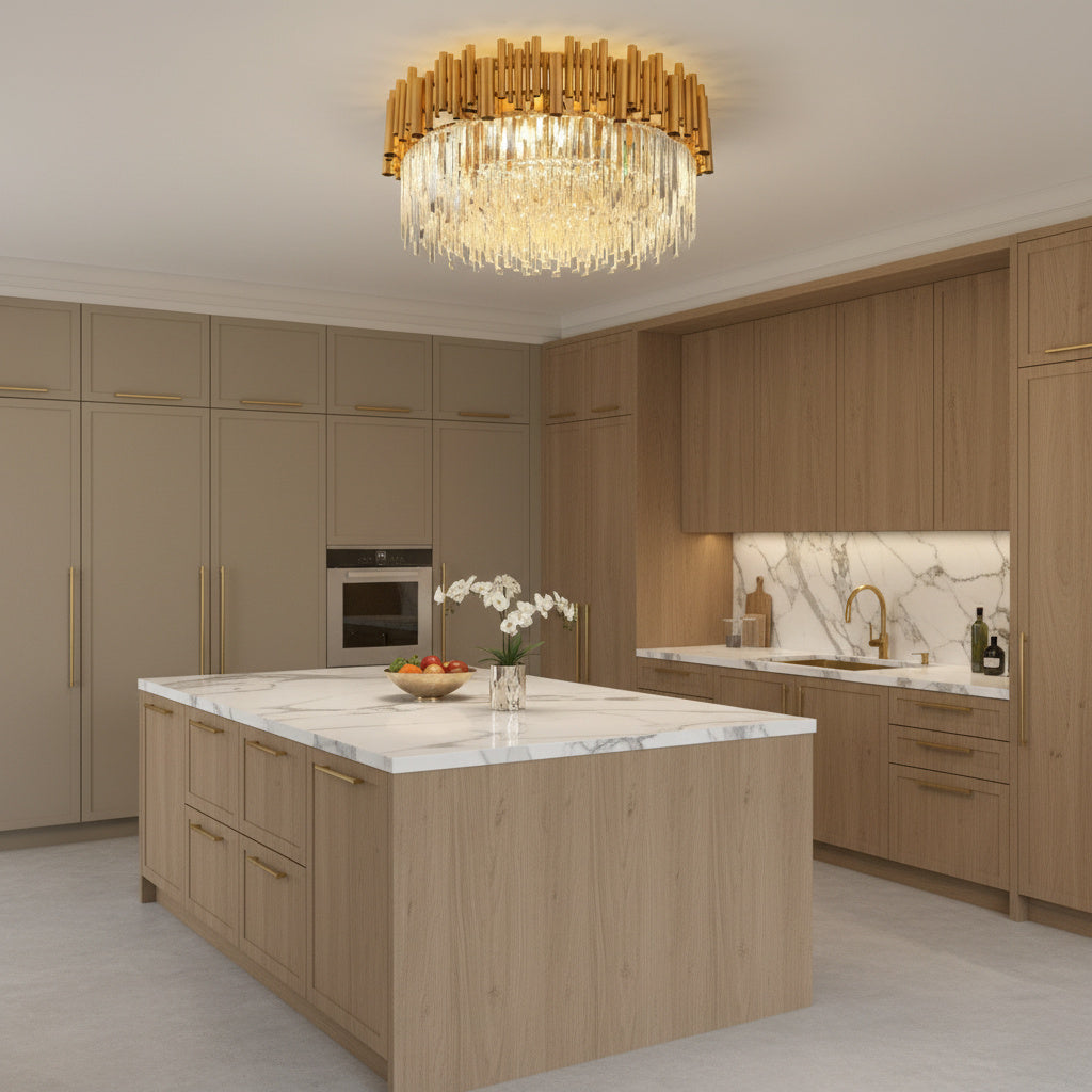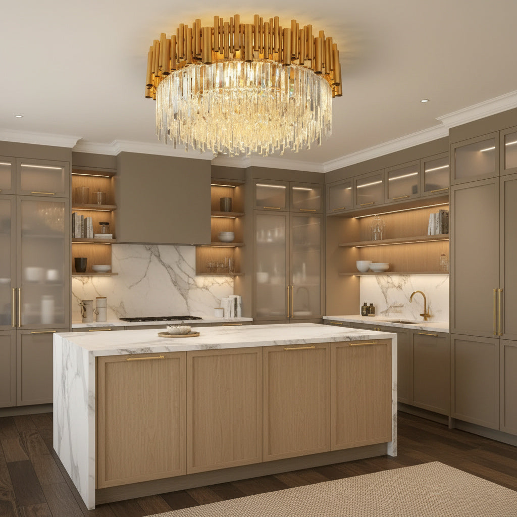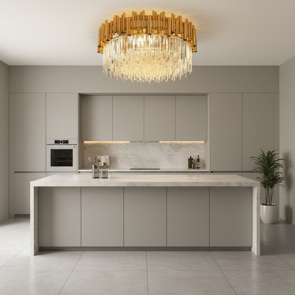 Transforma orice spatiu intr-un decor de revista cu Lustra Cristal GOLD – un corp de ilumin at spectaculos, care combina stralucirea cristalelor K9 cu finisaje aurii moderne. Aceasta lustra nu este doar o sursa de lumina, ci o declaratie de stil. Proiectata pentru a aduce un plus de rafinament, fie ca o montezi in living, dining sau hol, designul sau captivant devine rapid piesa centrala a incaperii.