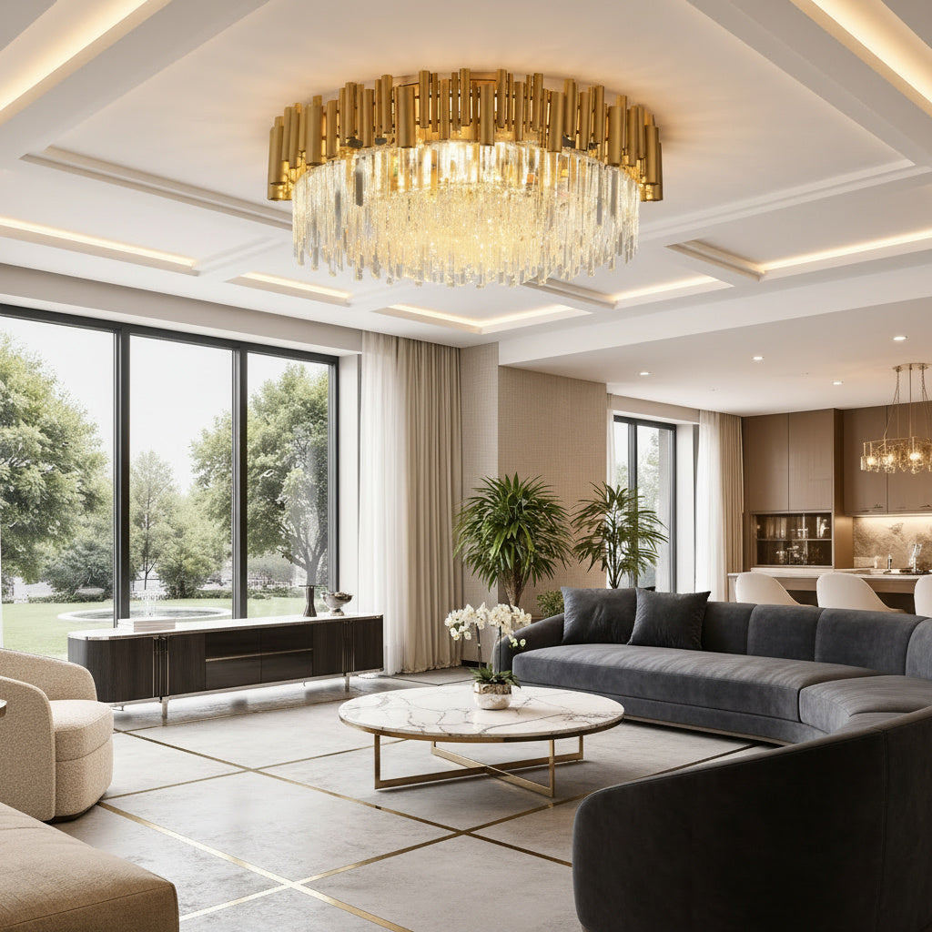Transforma orice spatiu intr-un decor de revista cu Lustra Cristal GOLD – un corp de ilumin at spectaculos, care combina stralucirea cristalelor K9 cu finisaje aurii moderne. Aceasta lustra nu este doar o sursa de lumina, ci o declaratie de stil. Proiectata pentru a aduce un plus de rafinament, fie ca o montezi in living, dining sau hol, designul sau captivant devine rapid piesa centrala a incaperii.