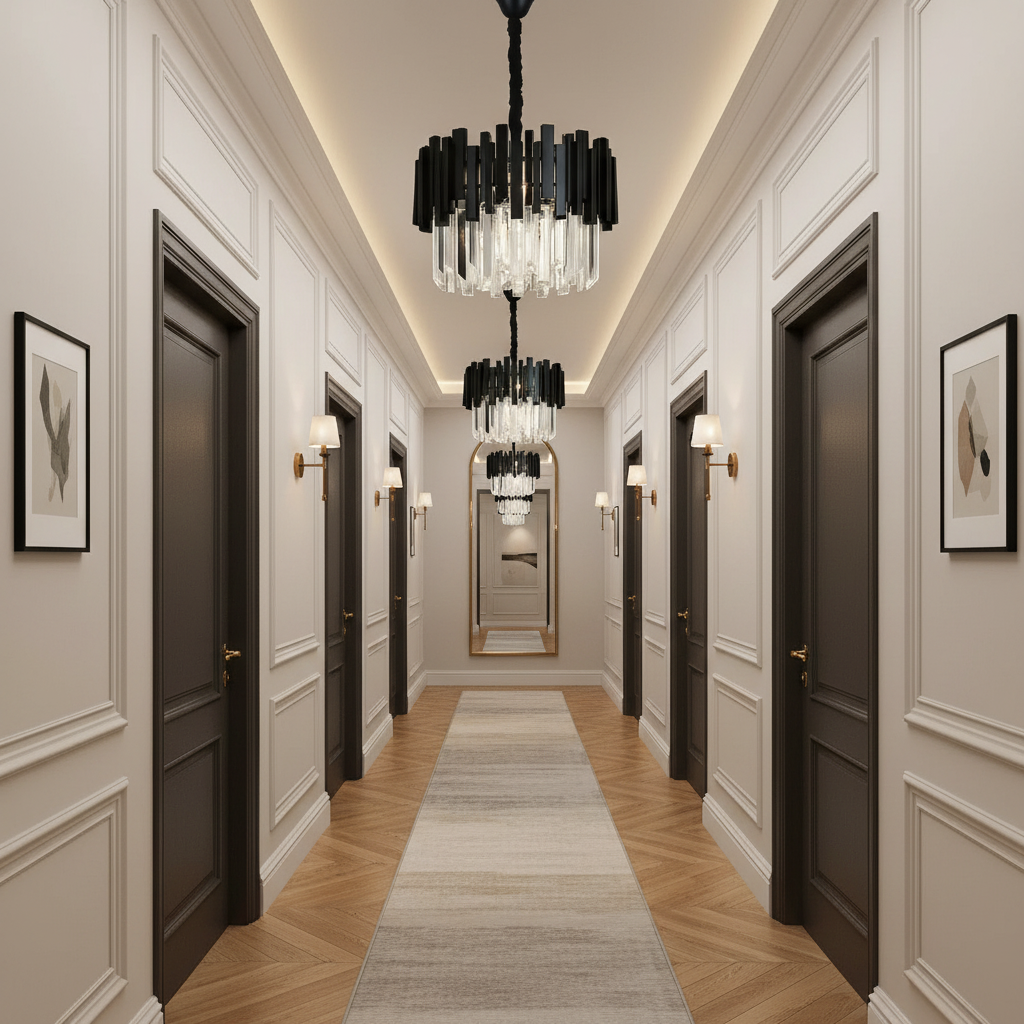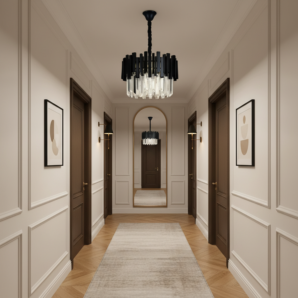 Acest minunat candelabru este conceput în totalitate din metal vopsit in camp electrostatic Negru si cristal K9 oferind un design unic, elegant, dar in acelasi timp modern. Coloristica de calitate oferă claritate superioară și strălucire, și totodată ofera un magnific joc de culori si lumini care va completa perfect atmosfera caminului tau.