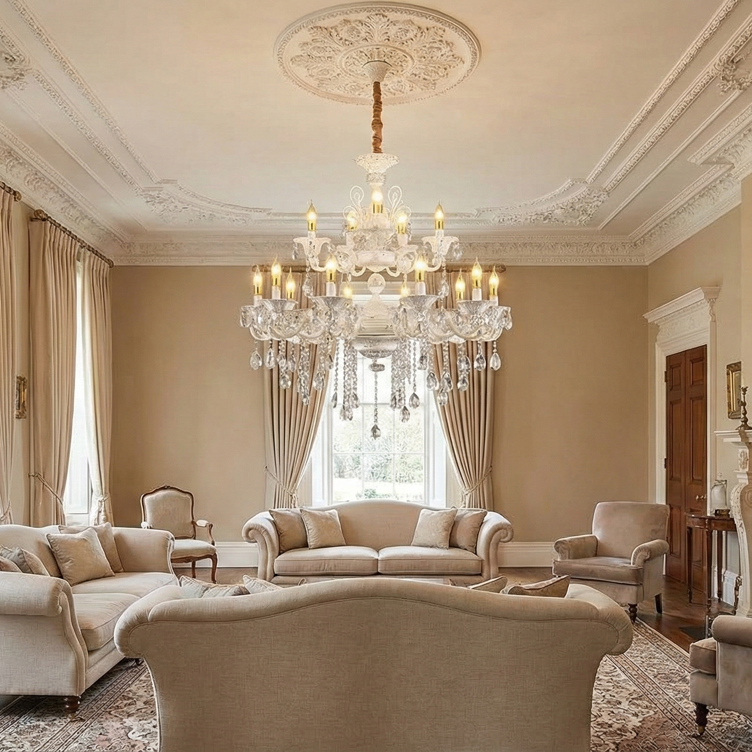 Designul clasic, cu doua niveluri de brate ornamentale si detalii atent lucrate, ofera un aspect nobil si echilibrat, ideal pentru livinguri spatioase, dininguri formale, holuri inalte sau interioare de tip boutique hotel. Cele 12 surse de lumina cu soclu E14 asigura o iluminare puternica si uniforma, mentinand in acelasi timp o atmosfera calda si primitoare.