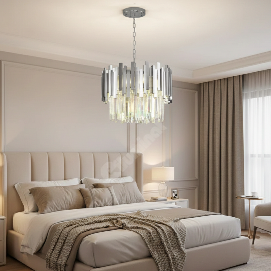 Candelabru Cristal GLORY SILVER 40cm cu Lant