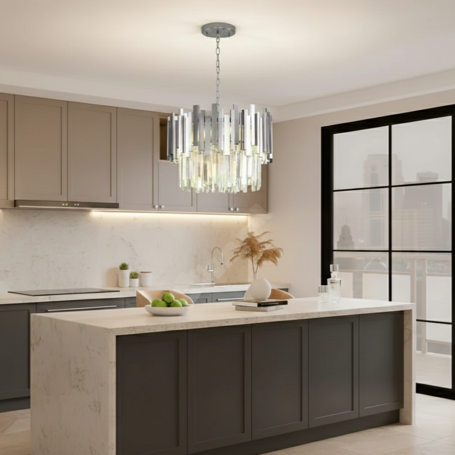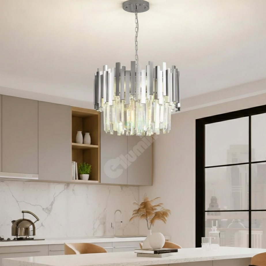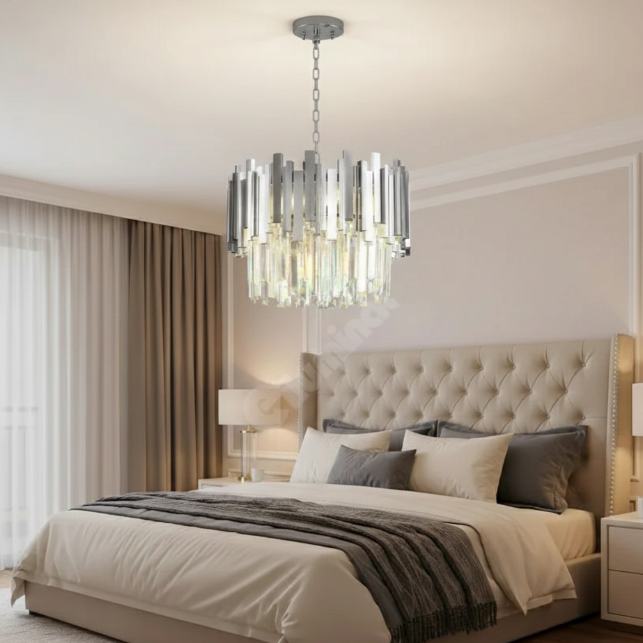 Acest minunat candelabru este conceput în totalitate din metal vopsit in camp electrostatic Negru si cristal K9 oferind un design unic, elegant, dar in acelasi timp modern. Coloristica de calitate oferă claritate superioară și strălucire, și totodată ofera un magnific joc de culori si lumini care va completa perfect atmosfera caminului tau.