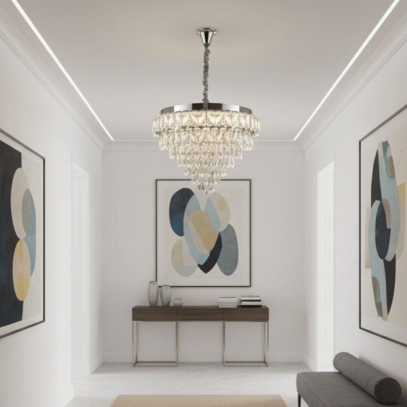 Tehnologia LED integrată asigură un consum redus de energie, o durată de viață îndelungată și o iluminare uniformă, plăcută pentru ochi. Cristalele amplifică efectul vizual al luminii, oferind un joc subtil de reflexii care adaugă profunzime și eleganță spațiului.