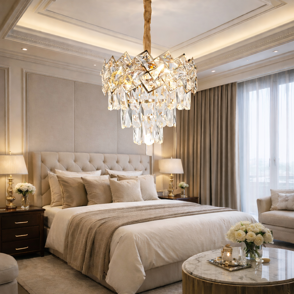 Acest minunat candelabru este conceput în totalitate din metal si cristal K 9 oferind un design unic, elegant, dar in acelasi timp modern si eficient. Coloristica de calitate oferă claritate superioară și strălucire, și totodată ofera un magnific joc de culori si lumini care va completa perfect atmosfera caminului tau.