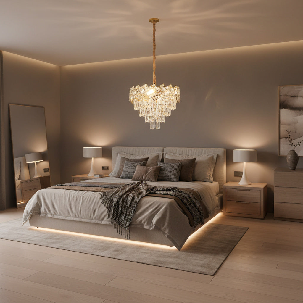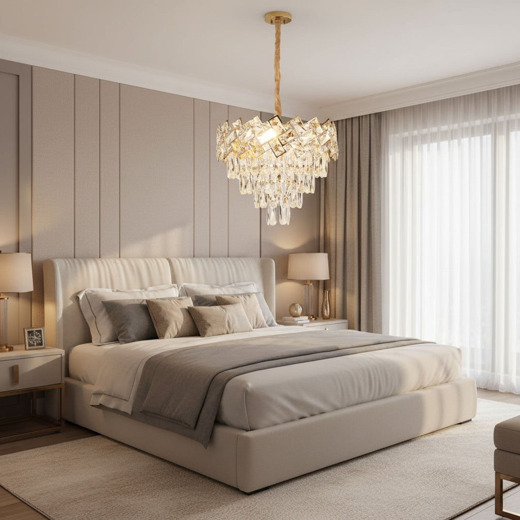 Acest minunat candelabru este conceput în totalitate din metal si cristal K 9 oferind un design unic, elegant, dar in acelasi timp modern si eficient. Coloristica de calitate oferă claritate superioară și strălucire, și totodată ofera un magnific joc de culori si lumini care va completa perfect atmosfera caminului tau.
