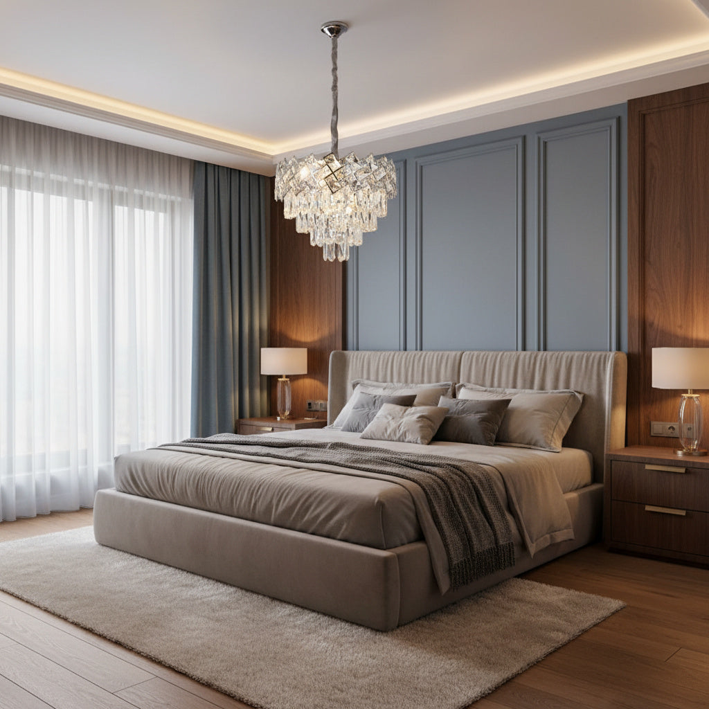 Acest minunat candelabru este conceput în totalitate din metal si cristal K 9 oferind un design unic, elegant, dar in acelasi timp modern si eficient. Coloristica de calitate oferă claritate superioară și strălucire, și totodată ofera un magnific joc de culori si lumini care va completa perfect atmosfera caminului tau.