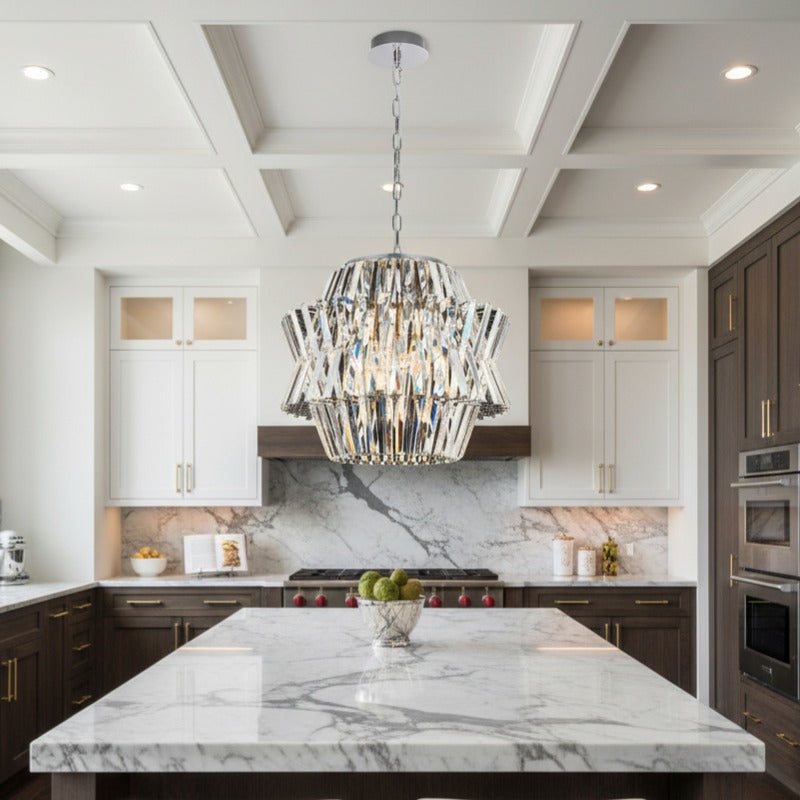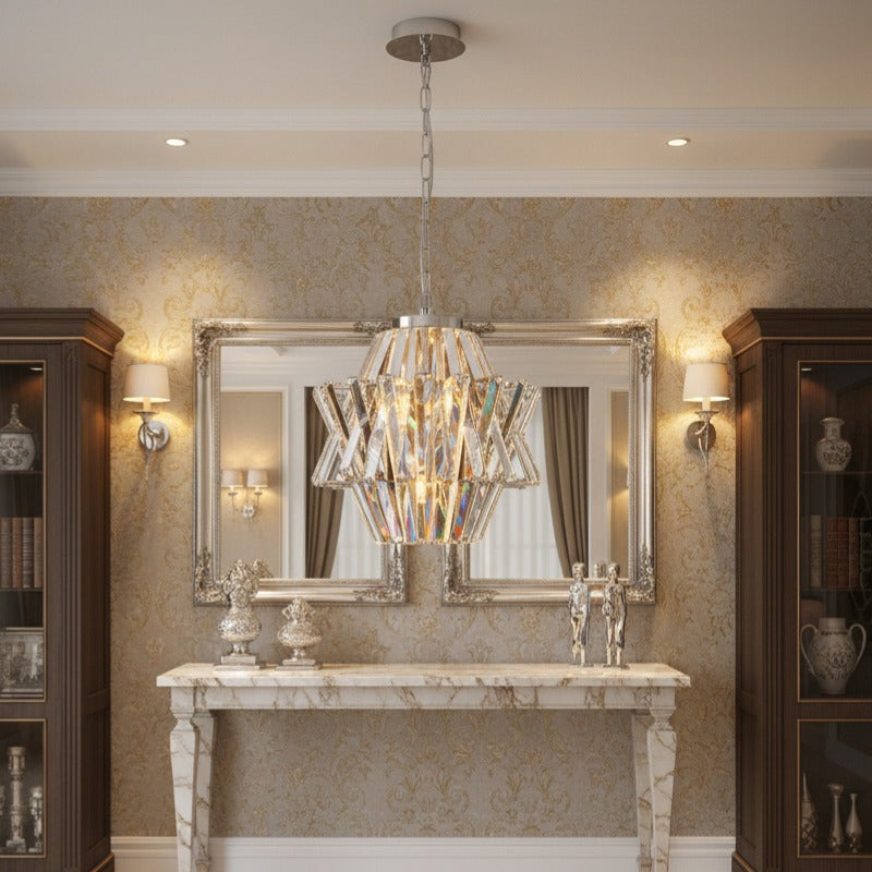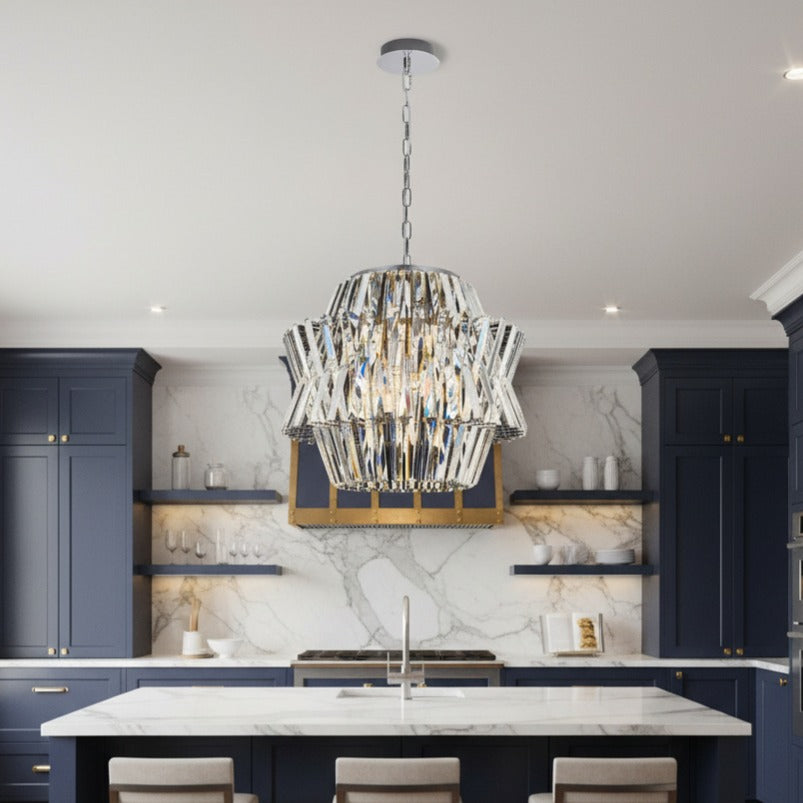 Candelabrele Crown din colecția noastră Crown reprezintă o armonie între eleganță și funcționalitate. Oferim lămpi de tavan din cristal disponibile în două finisaje deosebite: auriu satinat sau crom, realizate din oțel inoxidabil de cea mai înaltă calitate. Aceste candelabre excepționale întruchipează esența glamourului, combinând strălucirea cristalelor cu măiestria solidă a unei structuri metalice. Detaliile impecabile și designul unic fac din candelabrele din colecția Crown nu doar o sursă de lumină, ci și un element de design unic. Se îmbină perfect cu interioarele pline de farmec, adăugând un farmec extraordinar și un caracter luxos. Completează perfect camerele de zi, oferindu-le o atmosferă de strălucire și un gust rafinat. Pătrundeți în lumea colecției Crown și descoperiți unicitatea inerentă acestor candelabre din cristal, care vor deveni un element distinctiv și de neuitat în interiorul dumneavoastră.