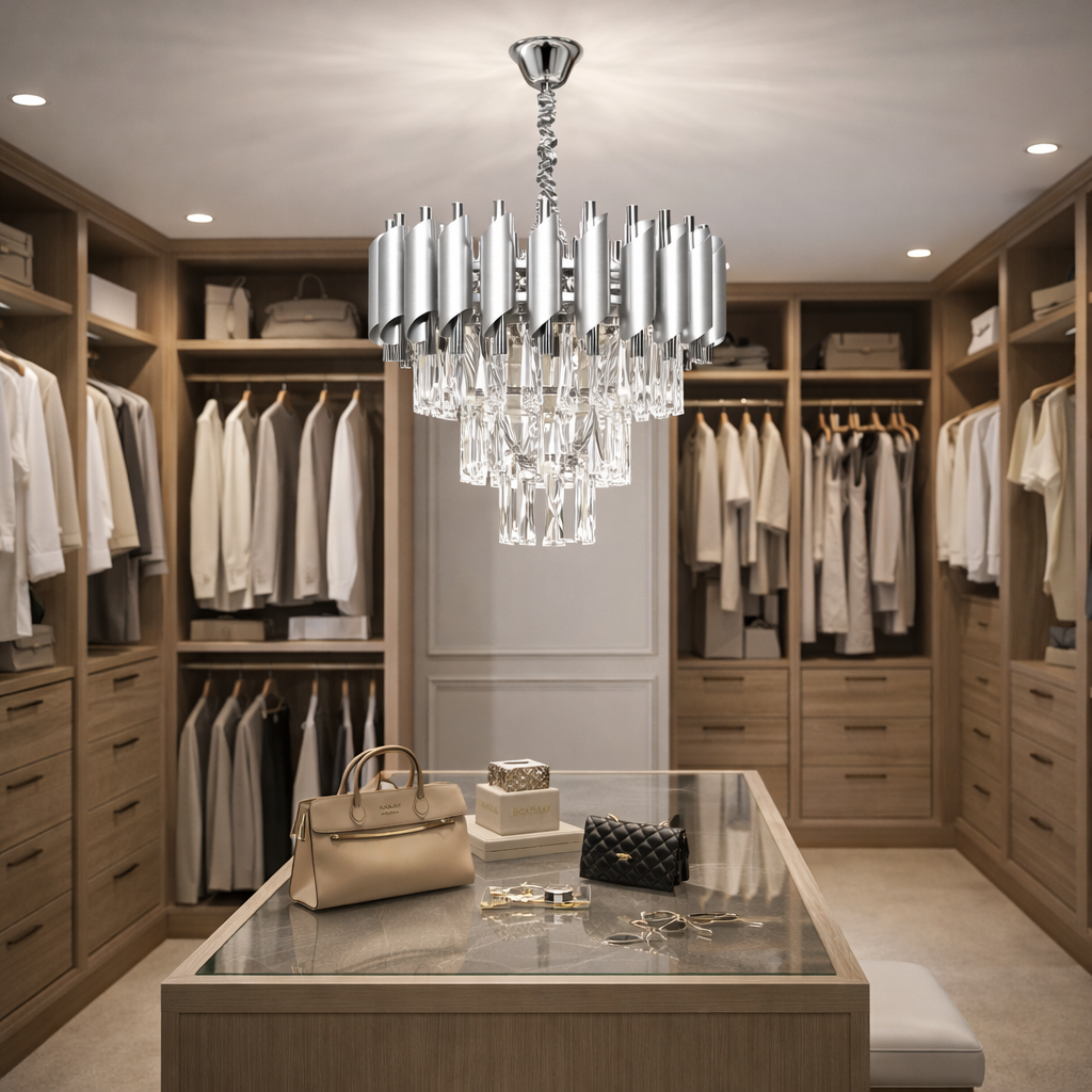 Acest minunat candelabru este conceput în totalitate din metal si cristal K 9 oferind un design unic, elegant, dar in acelasi timp modern si eficient. Coloristica de calitate oferă claritate superioară și strălucire, și totodată ofera un magnific joc de culori si lumini care va completa perfect atmosfera caminului tau.