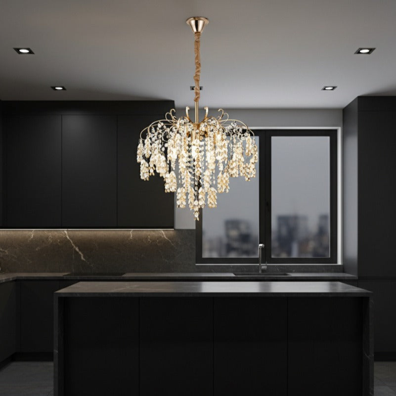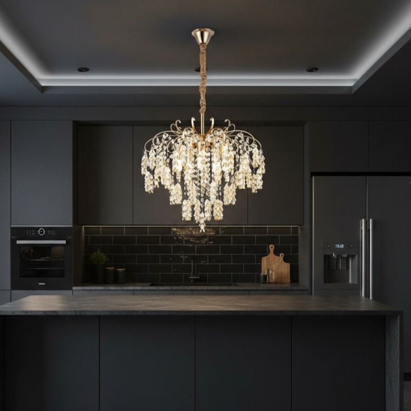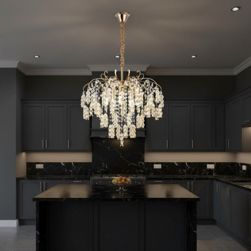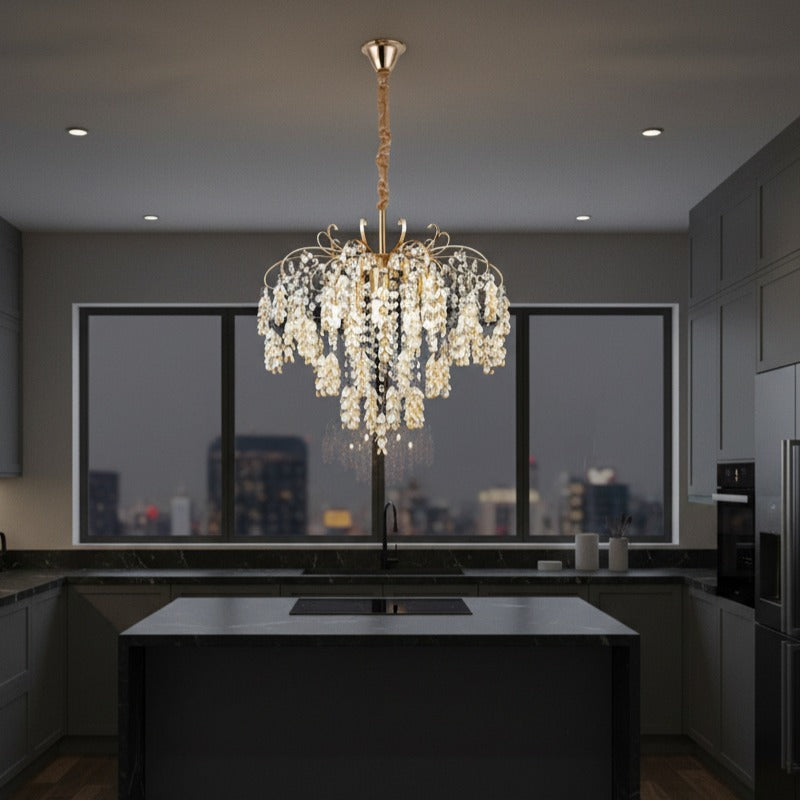 Combinația dintre finisajele premium și formele fluide transformă acest candelabru într-o piesă centrală de decor, care adaugă personalitate și eleganță oricărei case.