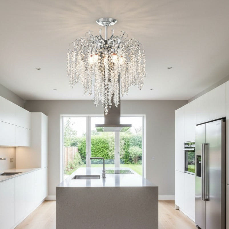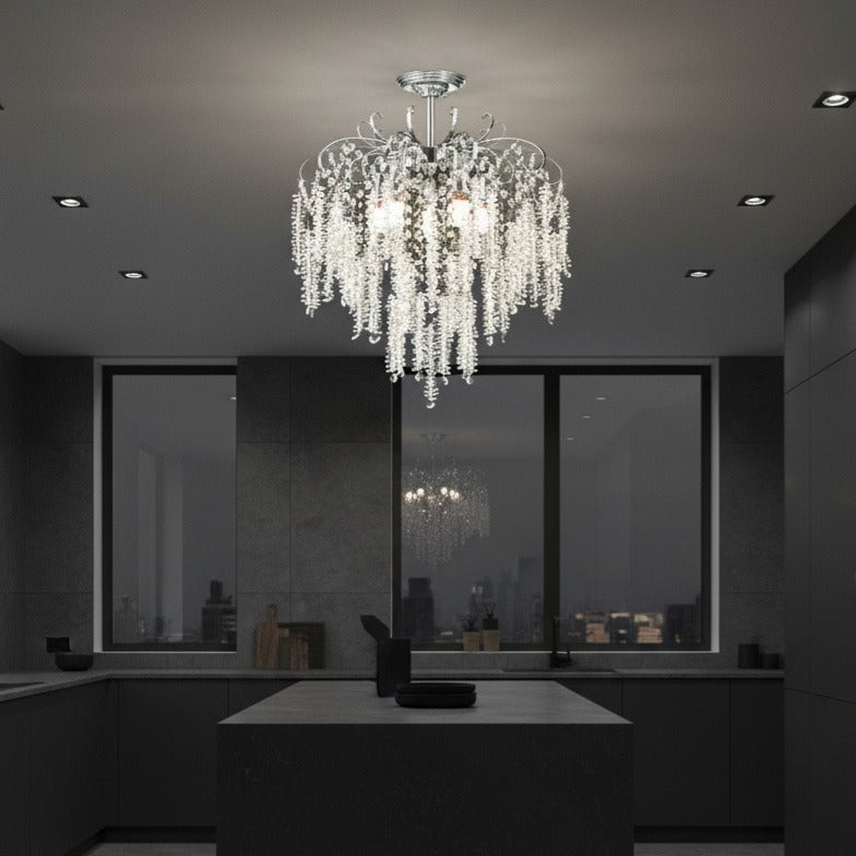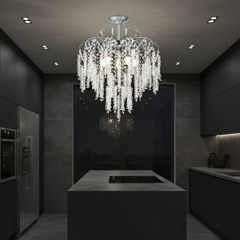 Combinația dintre finisajele premium și formele fluide transformă acest candelabru într-o piesă centrală de decor, care adaugă personalitate și eleganță oricărei case.