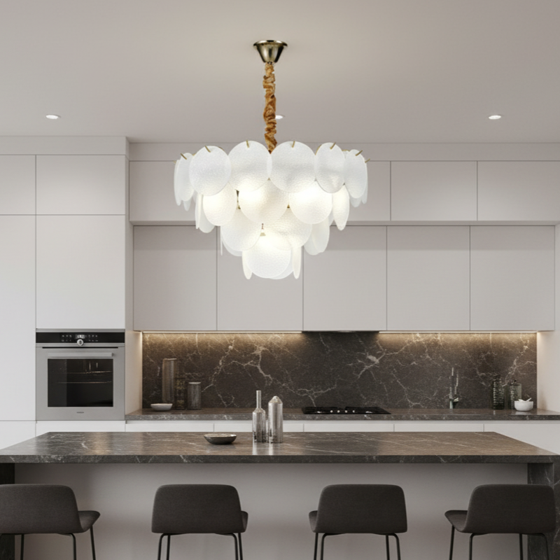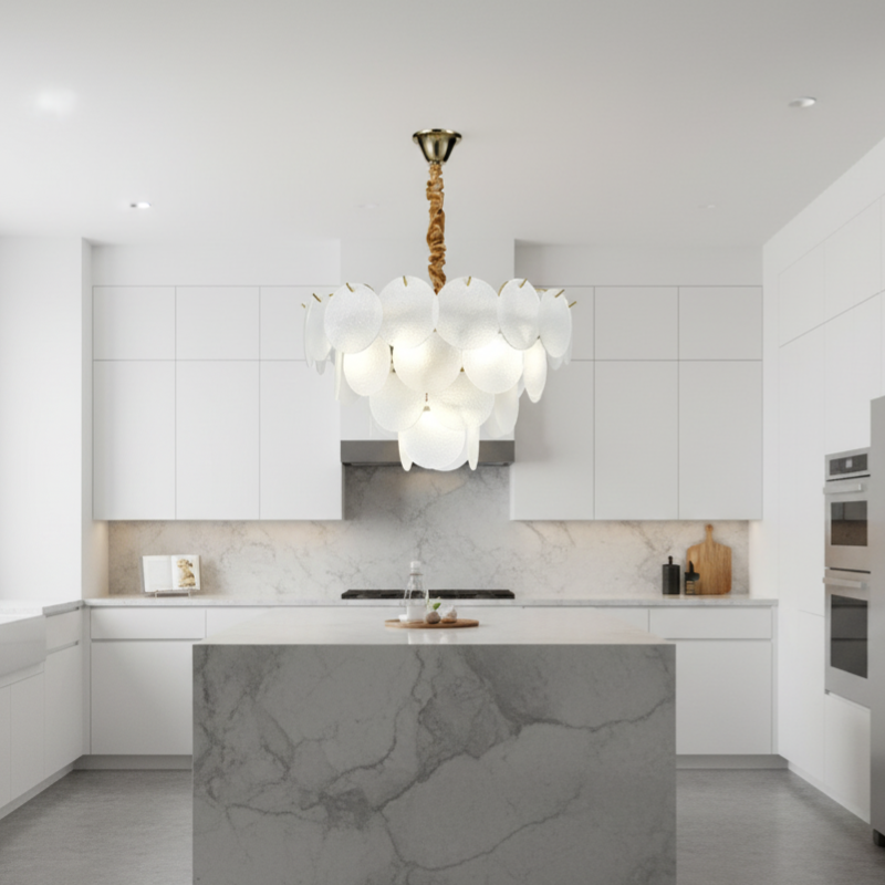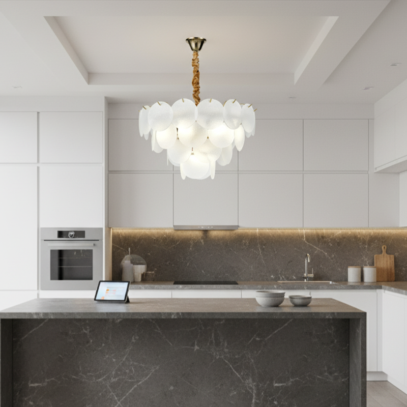 Combinația dintre finisajele premium și formele fluide transformă acest candelabru într-o piesă centrală de decor, care adaugă personalitate și eleganță oricărei case.