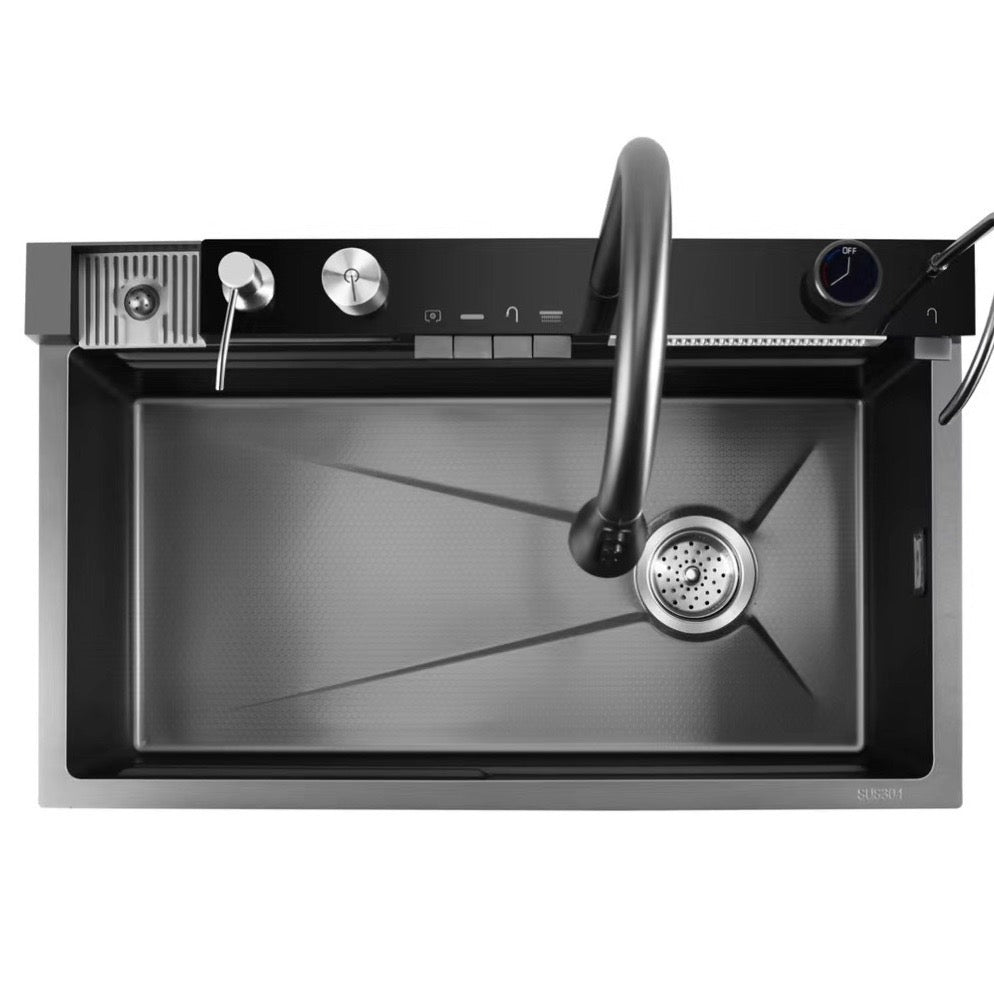 Aceasta chiuveta de bucatarie profesionala multifunctionala este realizata din otel inoxidabil de inalta calitate si are un finisaj modern in nuanta de gri inchis – negru. Iluminarea LED integrata adauga atat un plus de vizibilitate, cat si un accent elegant, transformand chiuveta intr-un element central al bucatariei. Dimensiunile de 75x45x20 cm asigura un spatiu de lucru generos si eficient.