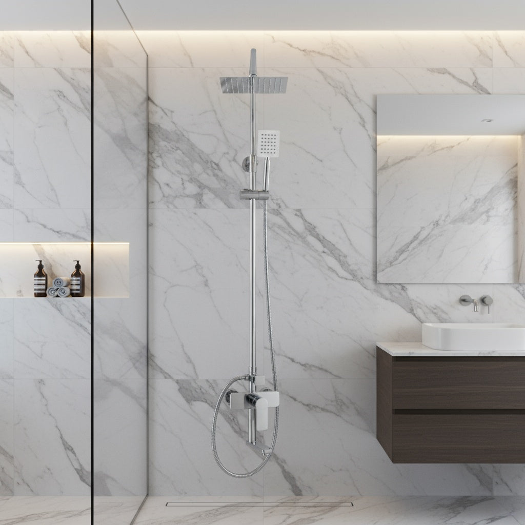 Coloana de dus cromata este o solutie eleganta si fiabila pentru orice baie moderna sau clasica. Realizata din alama sanitara de inalta calitate, aceasta coloana asigura durabilitate ridicata si mentinerea finisajului cromat impecabil in timp. Designul sau versatil se potriveste perfect atat pentru montaj langa cada, cat si in cabine de dus.