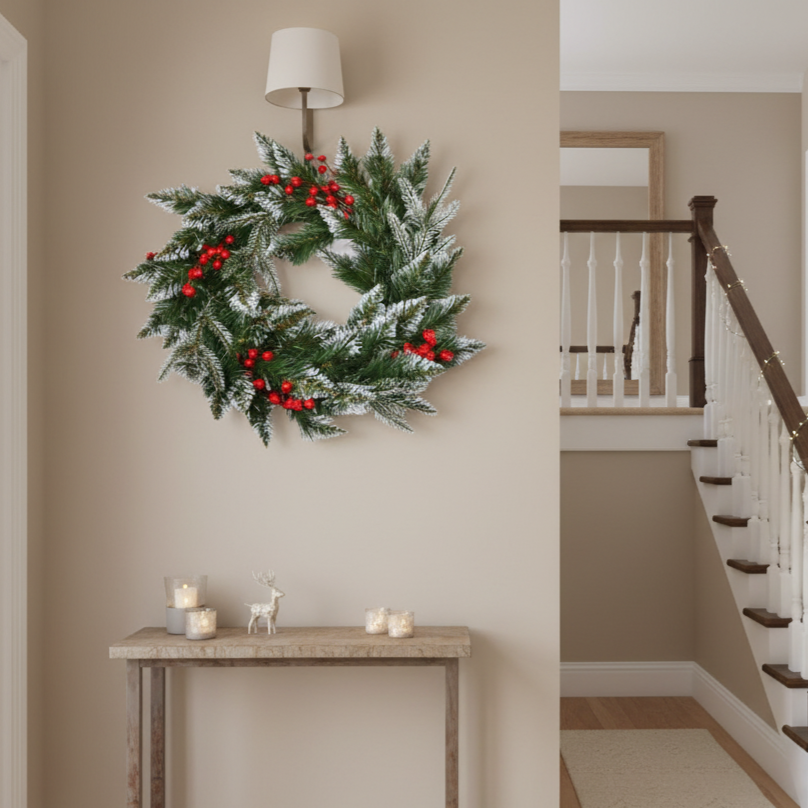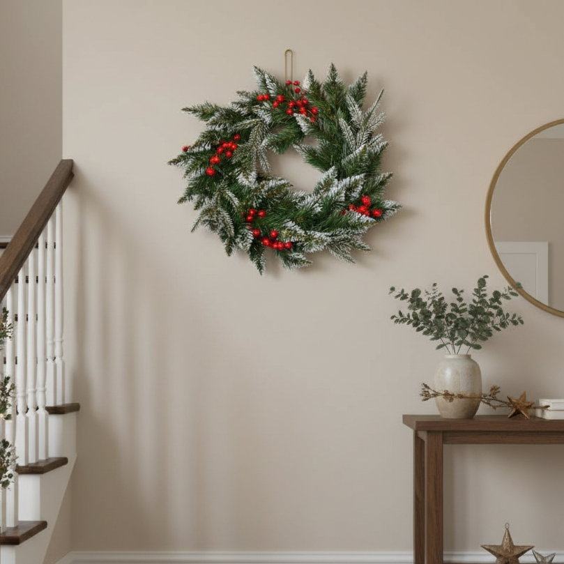 Adaugă un accent festiv instant cu această coroniță de Crăciun, potrivită pentru decorarea ușii de la intrare, a pereților, ferestrelor, scărilor sau a zonelor de tip șemineu. Are un aspect bogat și îngrijit, se integrează ușor în amenajări moderne sau tradiționale și este o alegere inspirată atât pentru acasă, cât și pentru birou ori spații comerciale. Poate fi folosită ca atare sau accesorizată cu funde, globuri ori luminițe separate, pentru un decor personalizat.