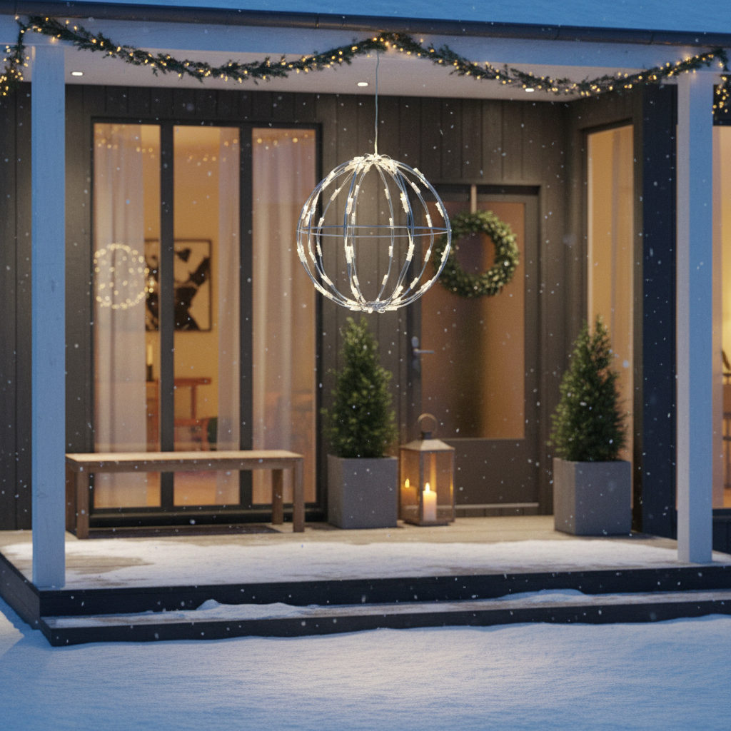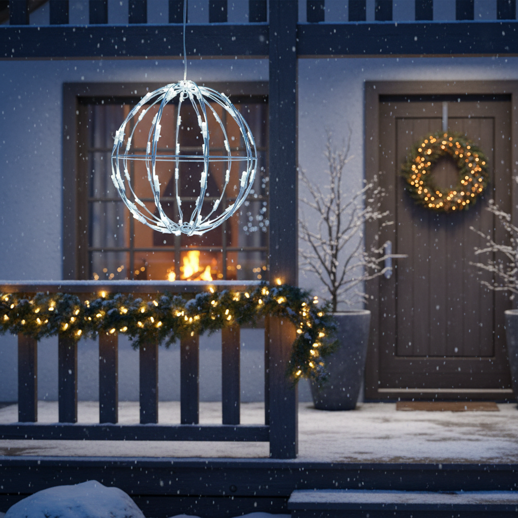 Globul Decorativ Starfell aduce o nota moderna oricarui spatiu prin designul sau sferic si lumina rece ce creeaza un efect stralucitor, uniform si elegant. LED-urile integrate sunt dispuse pe structura metalica pentru a forma o sfera luminoasa ce atrage privirile imediat si transforma complet ambianta. Perfect pentru sarbatori, terase, vitrine sau decoruri tematice, globul lumineaza echilibrat si ofera un accent vizual spectaculos cu un consum minim de energie.