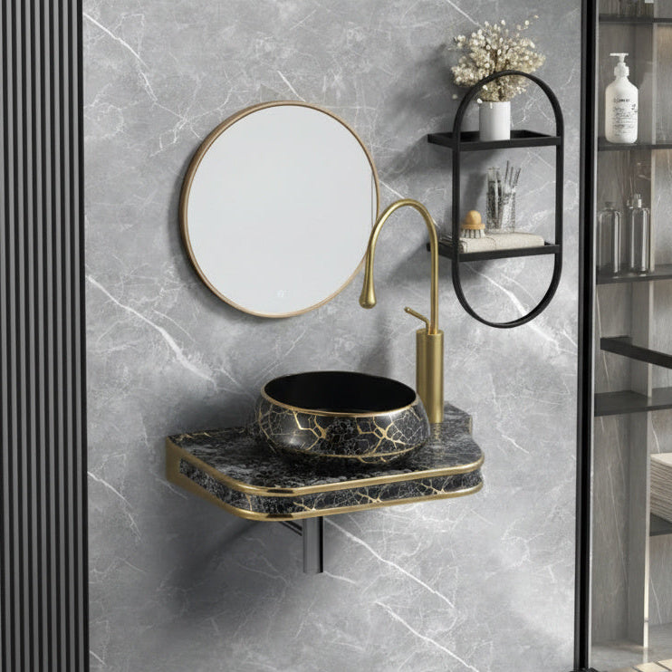 Lavoar Ceramic Premium 65.5x37x8 cm – Design negru luxury cu insertii aurii tip marmura