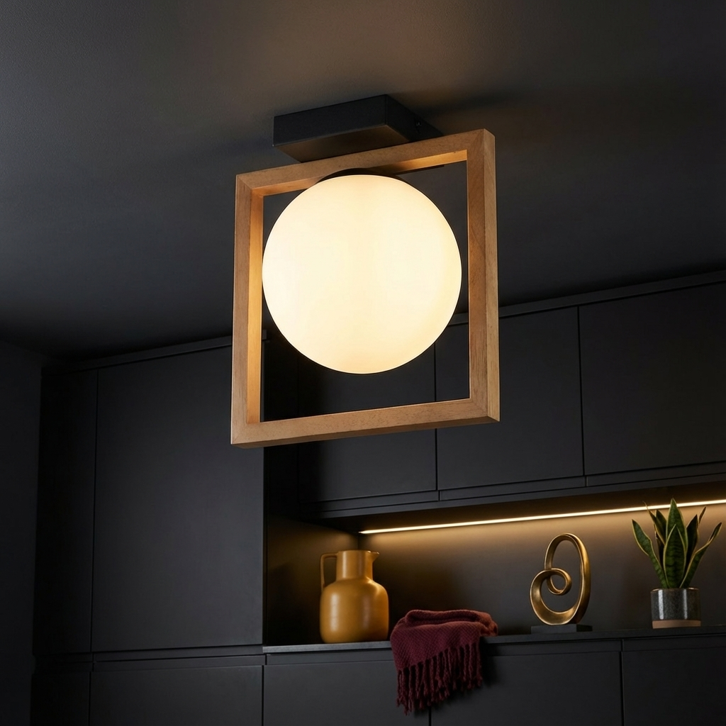 Lustra INIGO aduce un aer natural si cald in orice incapere, datorita combinatiei dintre lemnul natural si globul opal. Forma geometrica moderna pune in evidenta sursa de lumina, creand un efect decorativ placut si relaxant. Este alegerea ideala pentru spatii mici, unde doresti un corp minimalist, dar cu personalitate.