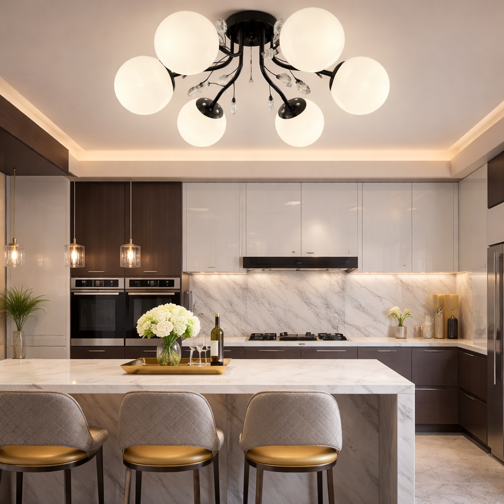 Aceasta lustra functioneaza cu becuri E27(neincluse). Nu contine telecomanda!