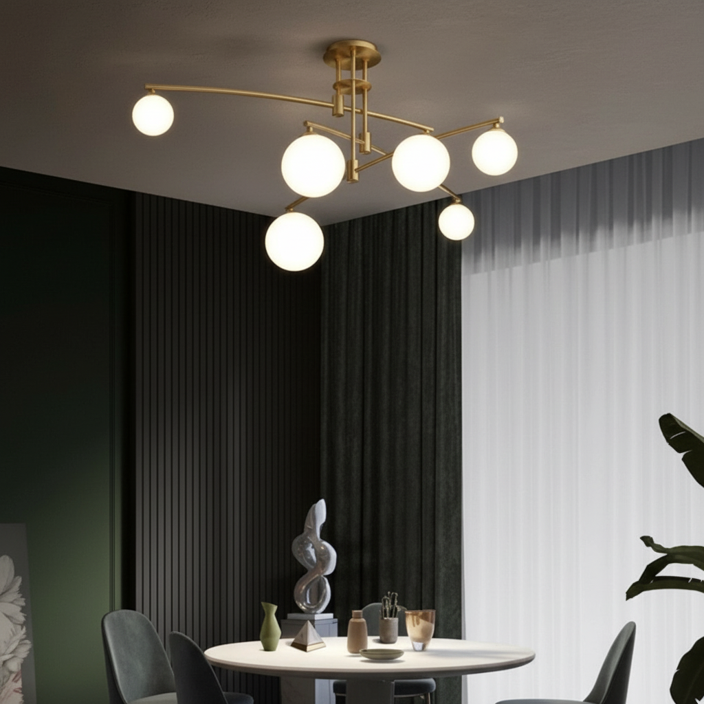 ✔ Distribuie lumina uniform datorita celor 6 abajururi matuite