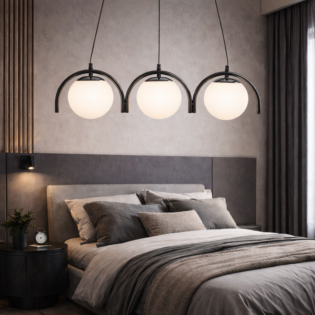 Lustra Abajur Negru Lucios + Sticla 3xE27 Liniara