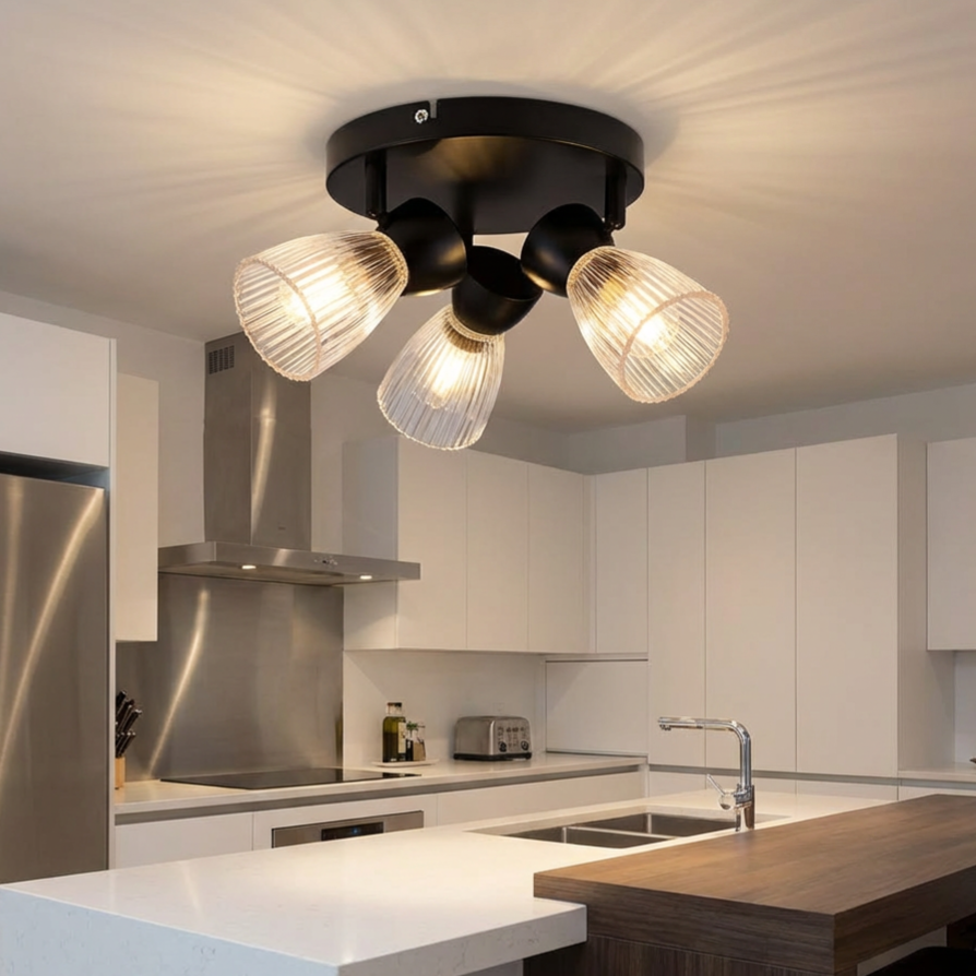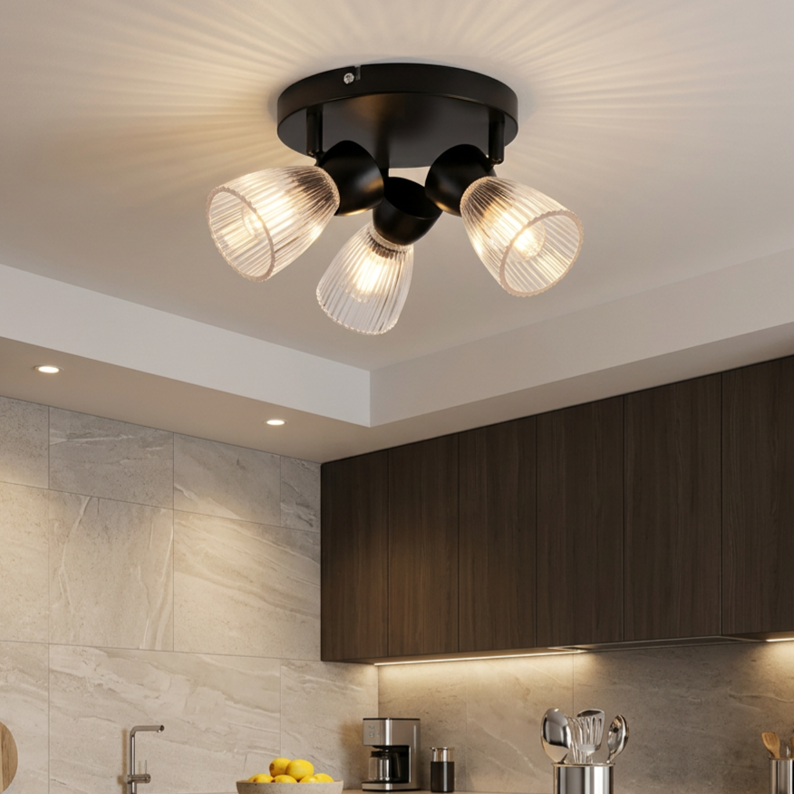 Lustra Best Round Premium Black cu 3 Spoturi Reglabile