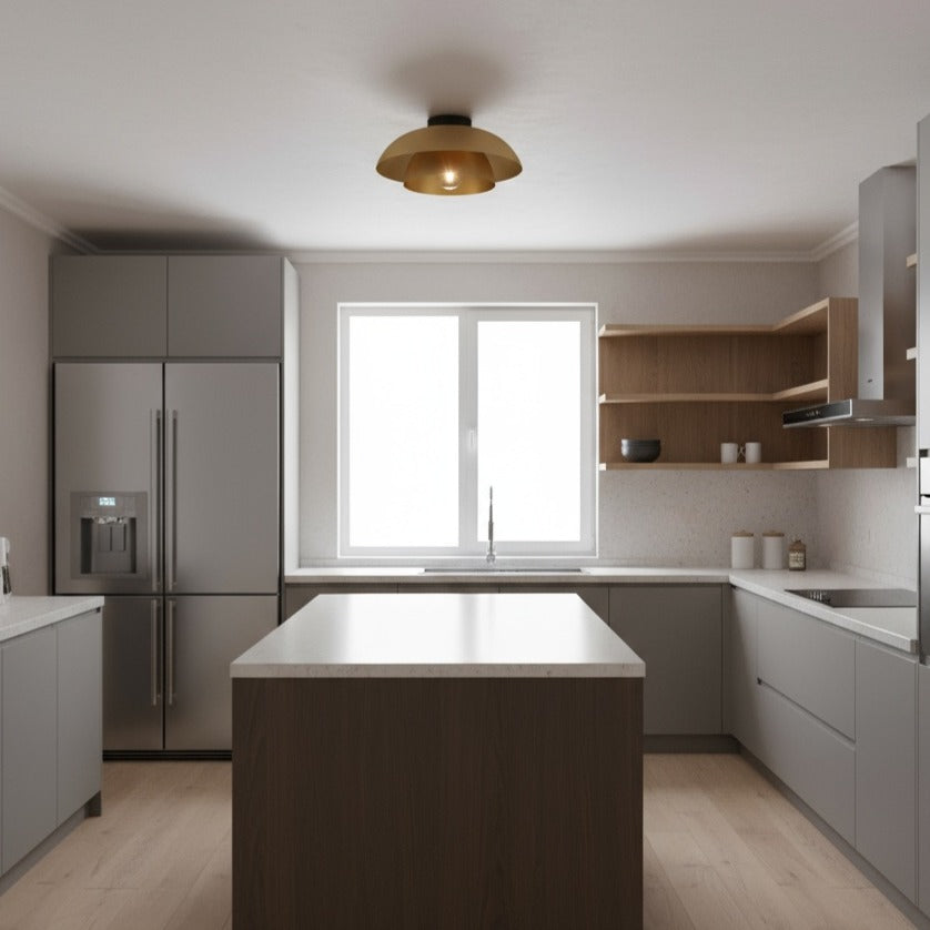 Cu silueta sa curbată și strălucirea subtilă a metalului, această plafonieră devine un element decorativ central, potrivit atât pentru living, dining, cât și pentru dormitor. Lumina caldă reflectată de suprafața aurie creează o atmosferă primitoare și sofisticată, ideală pentru locuințele care combină stilul modern cu accentele elegante.