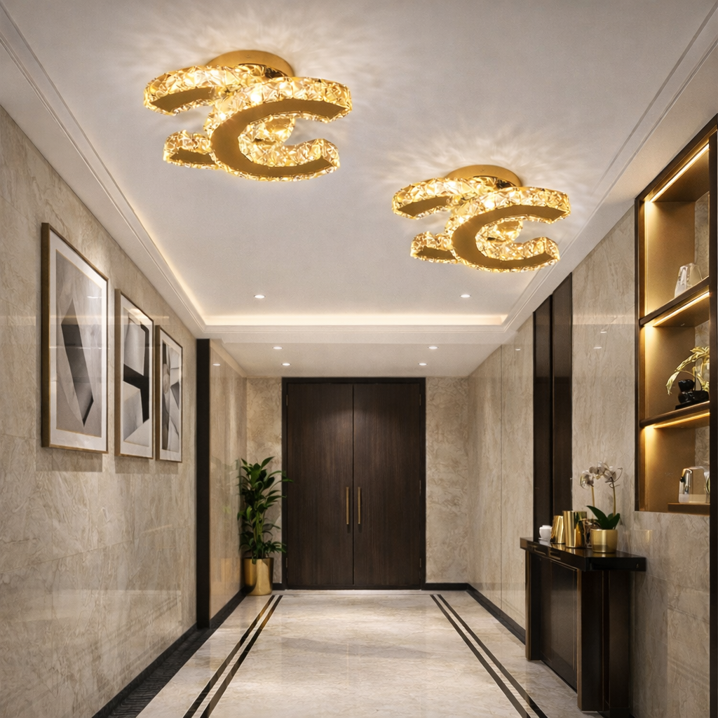 Lustra LED CRISTAL Double C GOLD Echivalent 200W