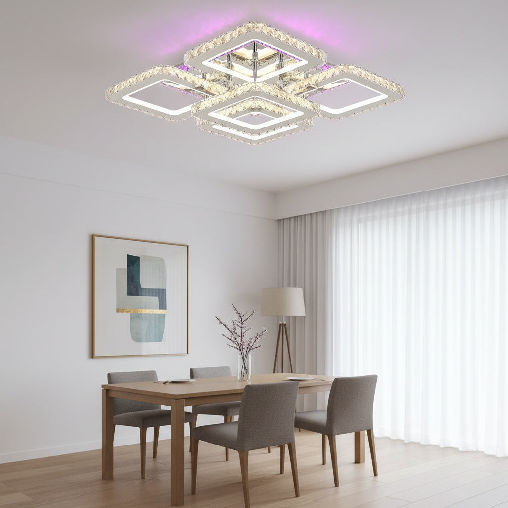 Lustra LED 4+1 SQUARE RGB Cristal Telecomanda Echivalent 800W