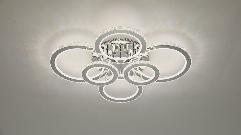 Lustra LED 6 CIRCLE Cristal Chrome RGB Echivalent 800W Telecomanda