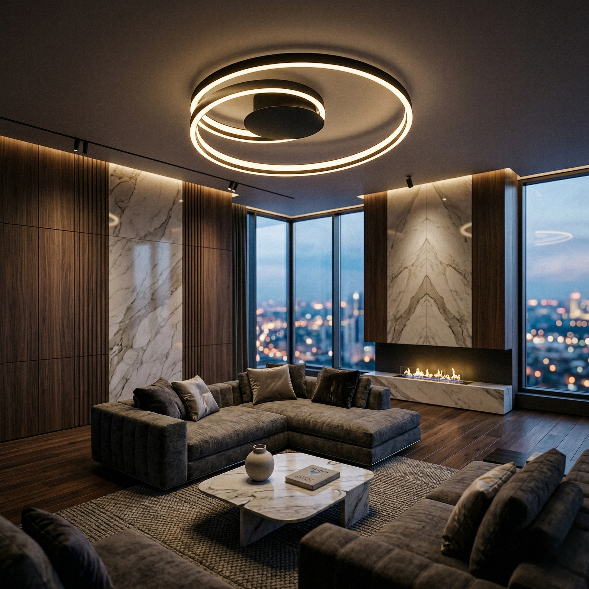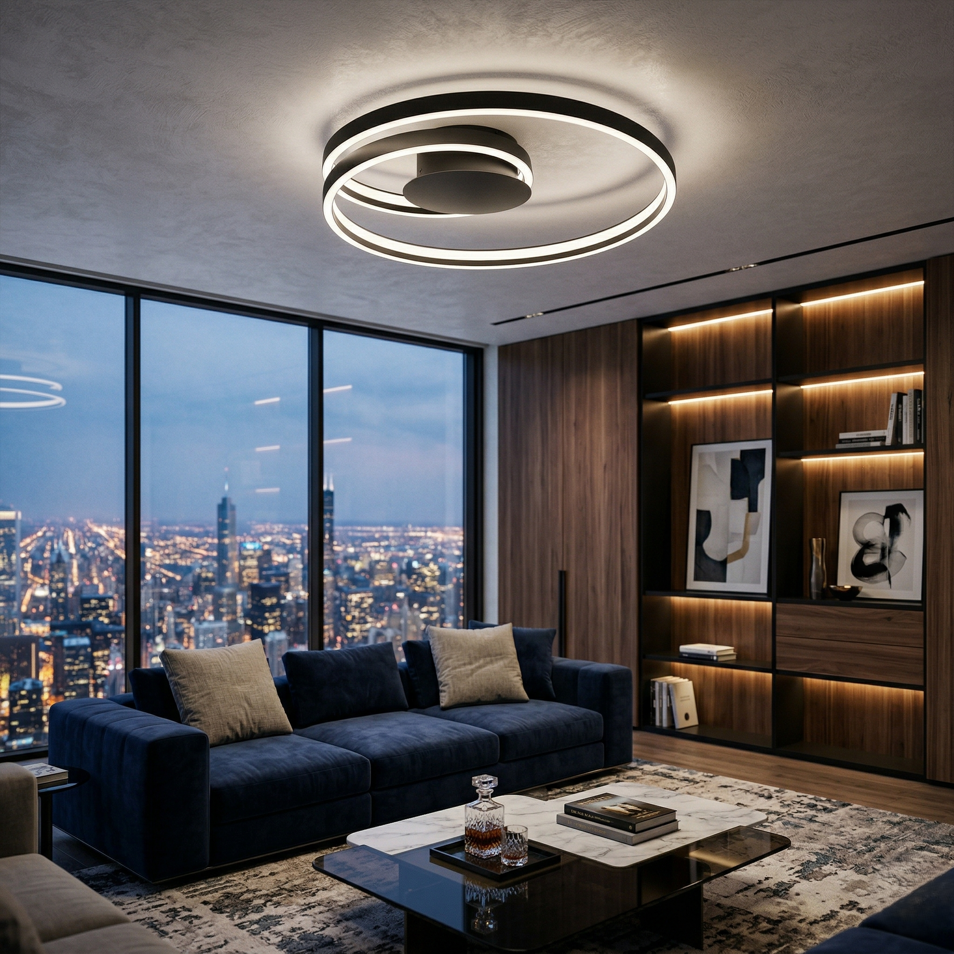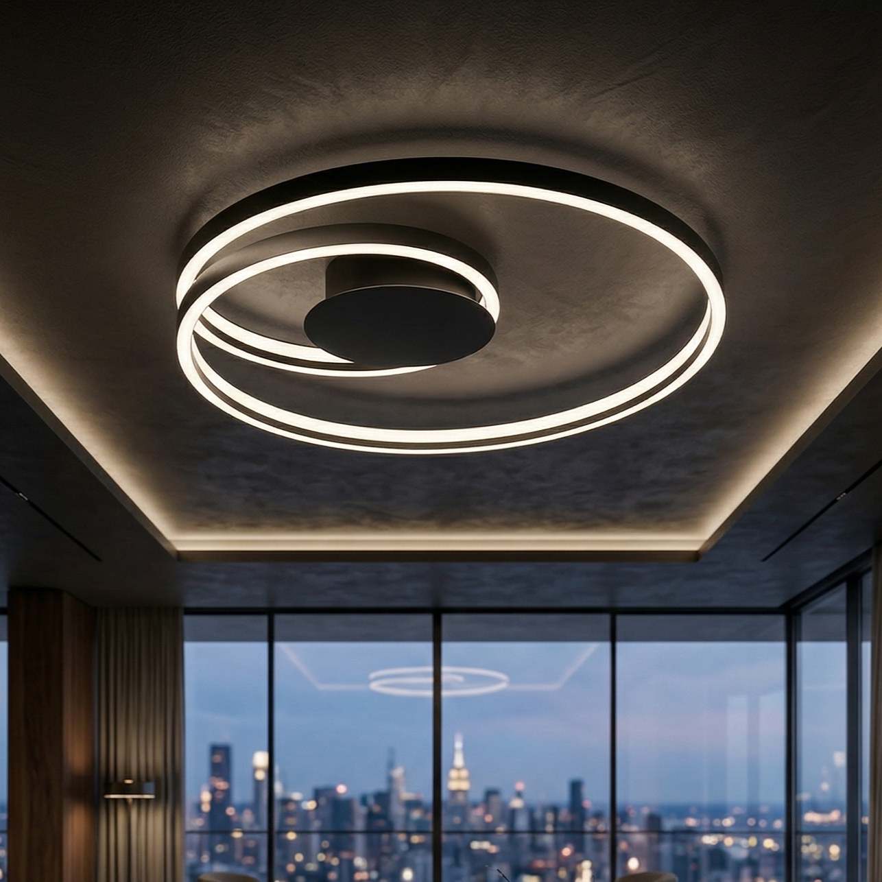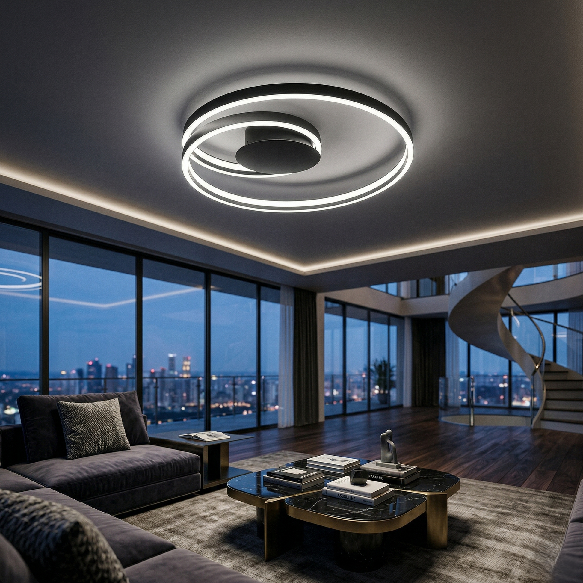 Echipata cu LED SMD integrat, lustra ofera o lumina uniforma si continua, fara intreruperi vizibile. Cu o putere de 46W si un flux luminos de pana la 5400 lumeni, aceasta este echivalenta cu aproximativ 500W in iluminatul clasic, fiind perfecta pentru livinguri, dormitoare sau zone open-space.