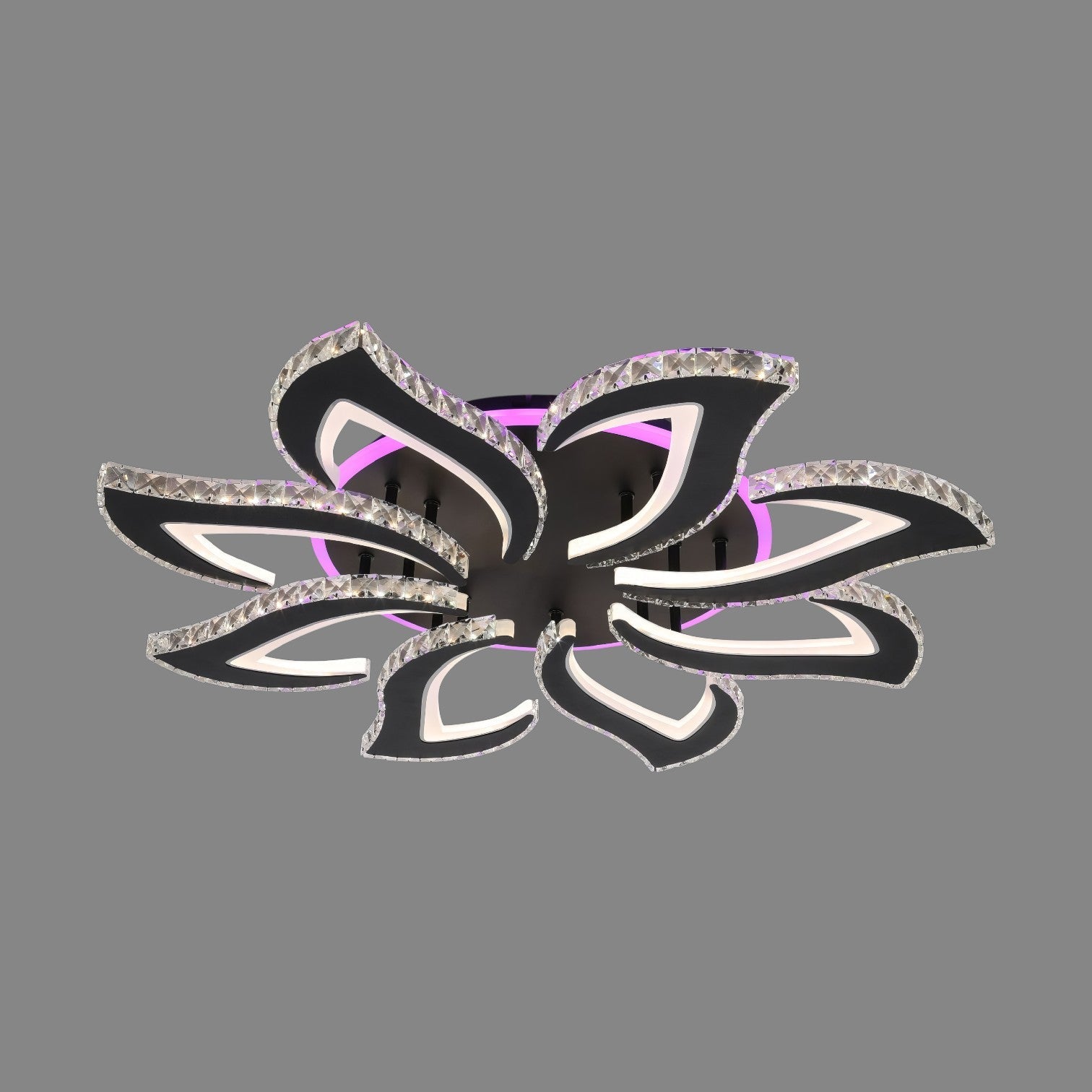 Lustra LED Camelia Grande Cristal RGB Black Echivalent 800W Telecomanda