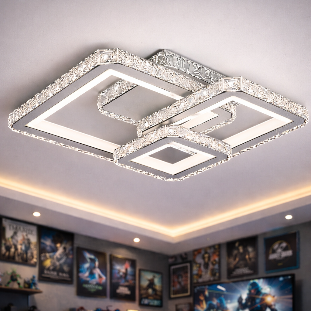 Aceasta lustra are placa cu LED integrat , are telecomanda cu multiple functii printre care schimbarea luminii de la lumina rece - naturala - calda pana la scaderea si cresterea intensitatii luminoase.