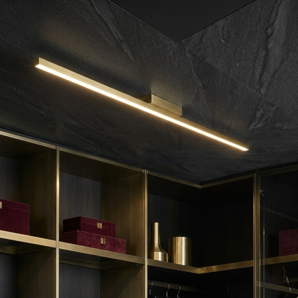 Lustra LED OSLO Gold 60 cm este o piesa de iluminat moderna, gandita pentru interioare minimaliste care pun accent pe linii curate si detalii elegante. Forma sa liniara subtire creeaza un efect vizual discret pe plafon, integrandu-se perfect in decoruri contemporane.