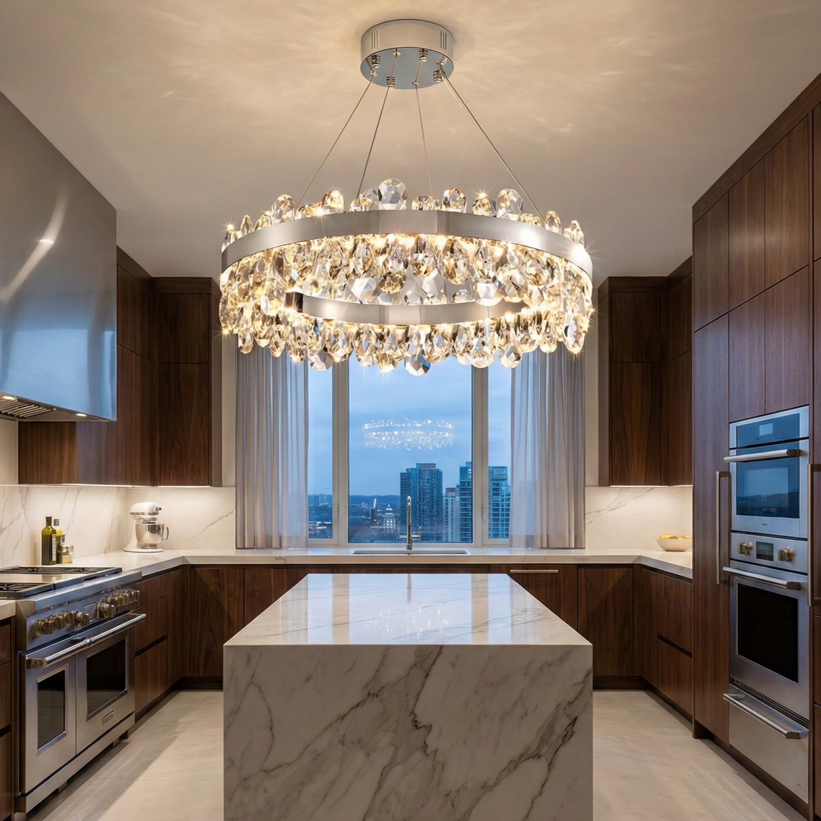Cu o putere de 90W si un flux luminos puternic de 5000 lm echivalent 500W incandescenti, aceasta lustra asigura iluminare eficienta in living, dining, bucatarie open-space sau dormitor. Sistemul de lumina include 3 functii – Alb Rece / Alb Natural / Alb Cald, iar schimbarea se face simplu, la fiecare aprindere.