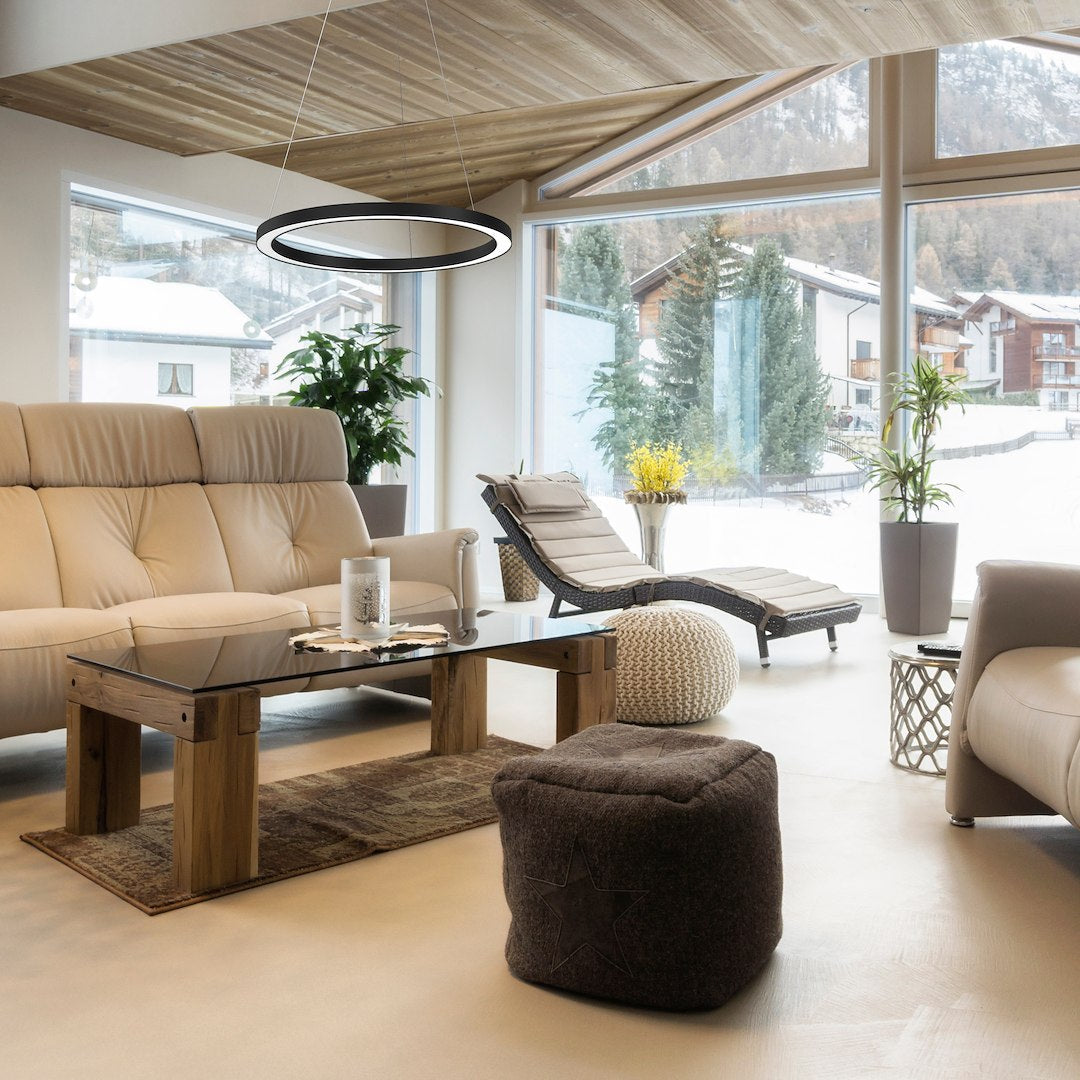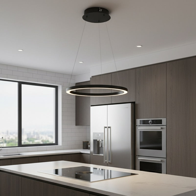 Colecția de lămpi inelare pentru interioare prestigioase. Căutați lămpi al căror design se îndepărtează de modelele tradiționale de abajururi? Colecția Galaxia este soluția perfectă pentru interioarele contemporane. Lămpile inelare, o alternativă la abajururi, arată original și, uneori, chiar futurist, în spațiile moderne. Minimalismul inelelor luminoase adaugă luminozitate, oferind în același timp o sursă excelentă de lumină. Oferim Colecția Galaxia ca soluție ideală pentru camere de zi, bucătării, sufragerii, dormitoare și chiar birouri! Pe scurt, se va potrivi oriunde doriți să încorporați minimalismul și luxul într-un singur accesoriu. Mai ales că am pregătit 8 modele diferite pentru dvs. Descoperiți familia completă de lămpi Galaxia! Lămpi pandantive Galaxia - potriviți modelul nevoilor dvs. Colecția de lămpi pandantive Galaxia include 8 modele, care diferă prin culoare, aranjament și numărul de inele luminoase. Pentru spații mai mici, o lampă pandantivă cu un singur inel în auriu mat sau negru este perfectă. În spațiile mai mari, puteți opta pentru două sau chiar trei inele în diverse configurații. Doriți o lampă pandantivă care atrage atenția din momentul în care intrați? Atunci explorați această lampă cu inele de diferite diametre, aranjate într-un mod aleatoriu, dar intrigant. De asemenea, puteți alege lămpi cu trei inele de diferite dimensiuni, aranjate paralel unul cu celălalt.