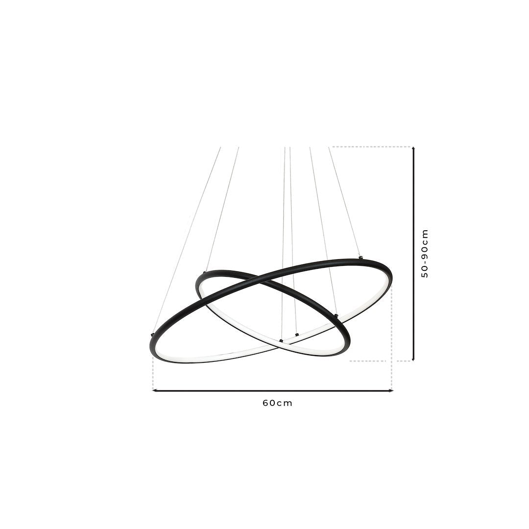 Această lampă elegantă din colecția Orion Black dispune de două module LED înlocuibile cu o putere totală de 53 W, montate în corpuri de iluminat rotunde cu diametre de 40 cm și 60 cm. Fluxul lor luminos este de 3710 lm și o temperatură de culoare neutră și plăcută de 3000 K. Un avantaj suplimentar este înălțimea reglabilă a sursei de lumină de la 50 la 100 cm, facilitând adaptarea la interioare de orice înălțime. Lampa este fabricată din metal și acril, finisată în negru mat. Printre