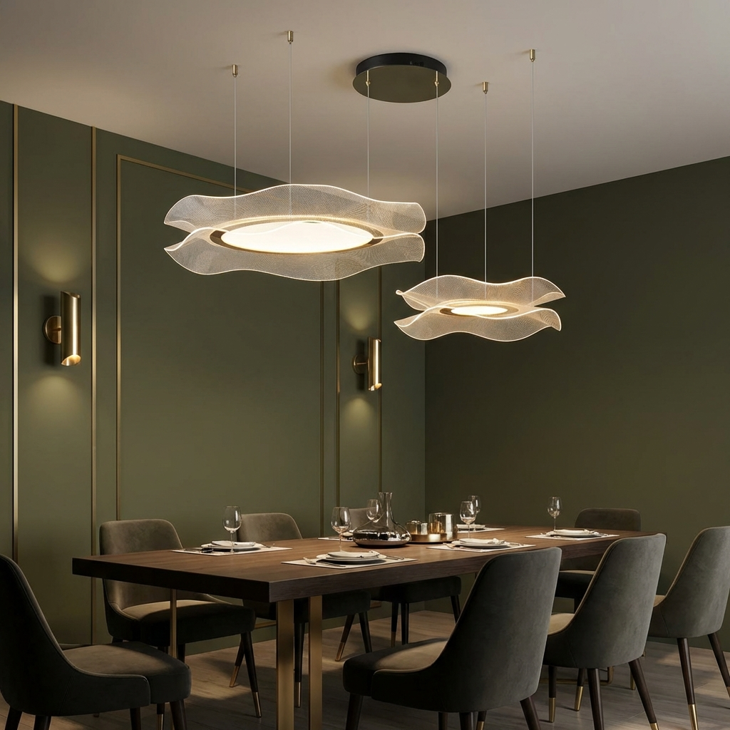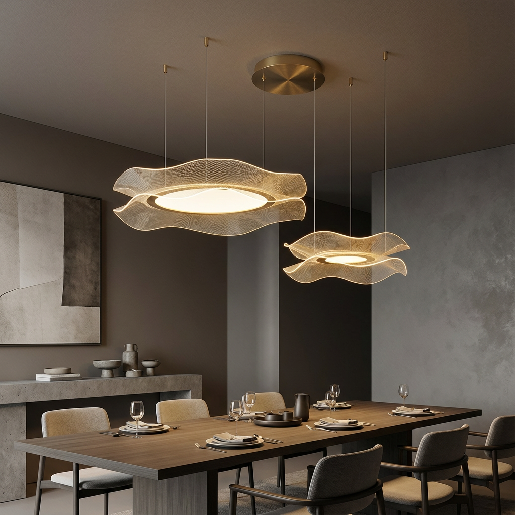 Cu o durata de functionare de peste 30.000 de ore si alimentare standard AC 220V, Lustra LED Golden Ripple Duo imbina designul sofisticat cu performanta si eficienta energetica. Produsul respecta standardele CE si RoHS si beneficiaza de o garantie de 2 ani.