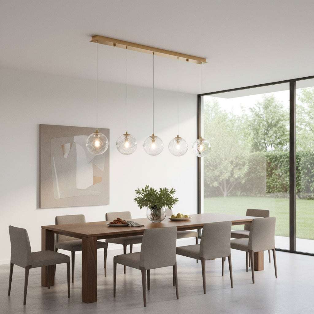 ✔ Design cu 5 globuri suspendate pentru un efect vizual spectaculos